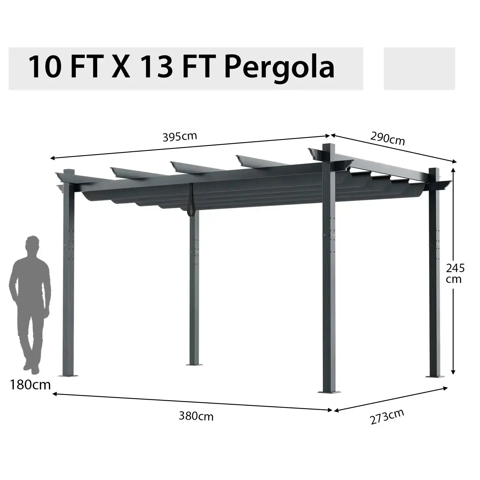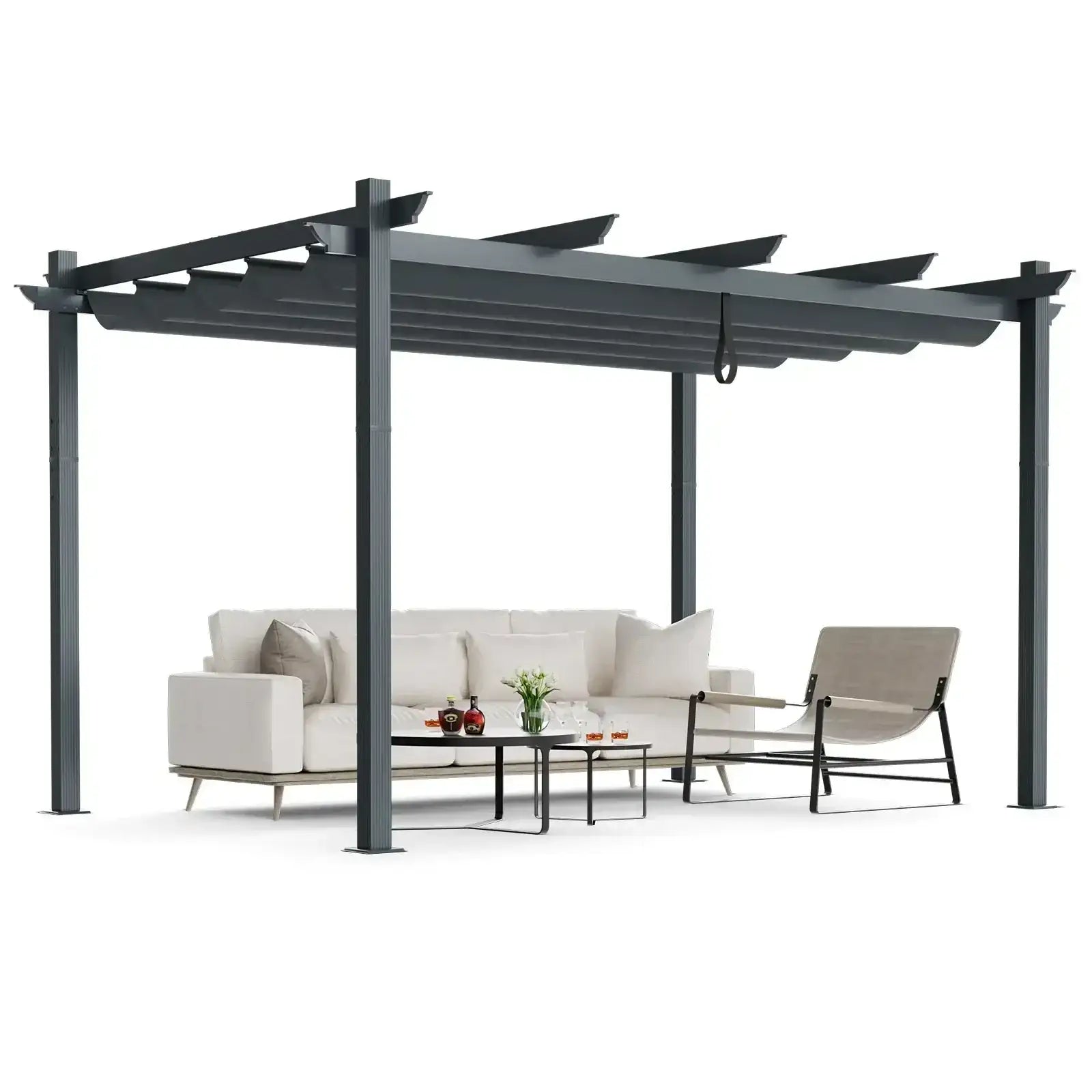 10 x 13 Feet Outdoor Aluminum Retractable Pergola Canopy Shelter-Gray