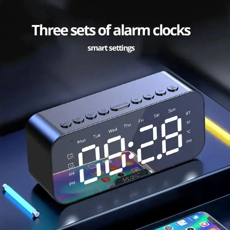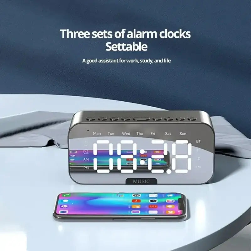 1pc LED Digital Alarm Clock with Bluetooth ,Speaker Mirror Bedroom Office Decor Table Screen Temperature FM Radio