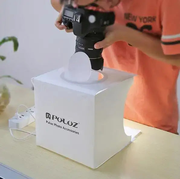 characteristics 100% Brand new! all-in-one portable studio, easy to use & take apart. the photo lightbox is designed for small items of photography enthusiasts, artisans, artists, students and other online sellers, professionals and product advertising clients. studio light box allows quick and easy shooting of small products such as jewelry, accessories, toys, watches, appliances and other items. set up your own photography studio anywhere in a matter of minutes, you can unfold this has taken light studio box and put it on any surface to get the perfect setting for small business photography articles, take pictures for them. portable snap button snap frame design, easier to install and carry, built-in led light, medium light supply and prevents shadows and reflections on your photos. with 6 EVA bottoms (Black, white, orange, red, green, blue), and internal LED light panel and USB cable (you should prepare a USB charger, power bank, or USB hub to power it ). Mini and light weight, just like a book when folded, easy to take anywhere.   specifications ShellMaterial: PVC Scenarios Material: EVA, non-woven Shell Color: White Color temperature: white Fresh, 2 * 5600 K Light source: 2 LED panels with 2 * 20 pcs beads on it bright: About 2 * 550 lumens Power Source: USB 5 V port: Micro USB, universal Android device port Rated Power: 2 * 3.5 W Size of the tent: About 24x23x22 cm / 9.4x9x8.6 "(unfolded) 23x23x1.5 cm / 9x9x0.59 "(folded)   attention please wait 3-5mm size deviations due to manual measurement.   Package Included 1 x Main Studio Box (with 2 LED panels) 1 x Round PVC Plate 1 x Soft Bag 6 x EVA Scenarios (6 different colors) 1 x Micro USB Cable 1 x User Manual