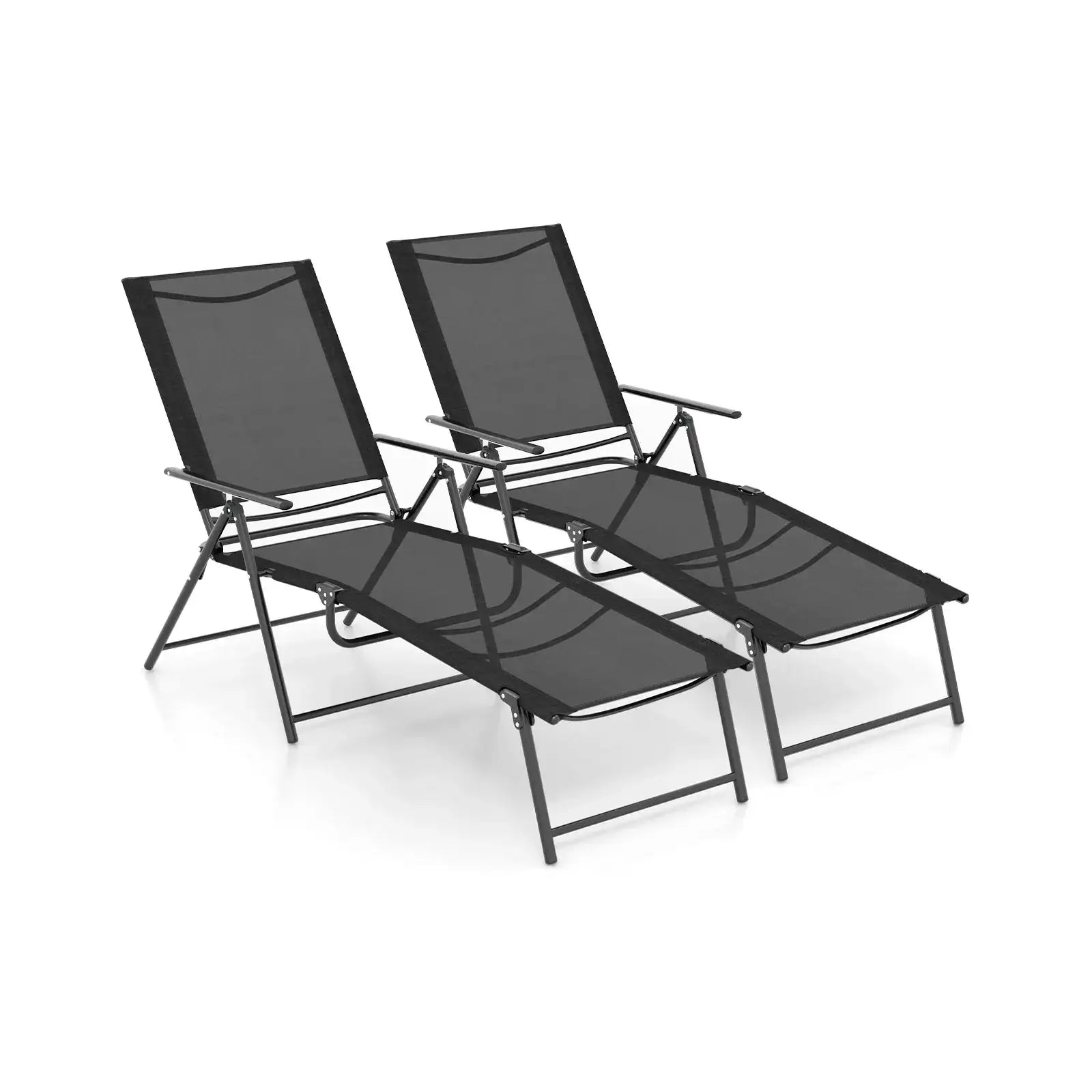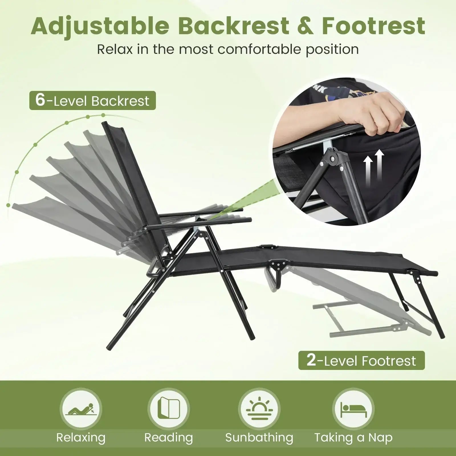 2 Piece Patio Folding Chaise Lounge Chairs Recliner with 6-Level Backrest-Black