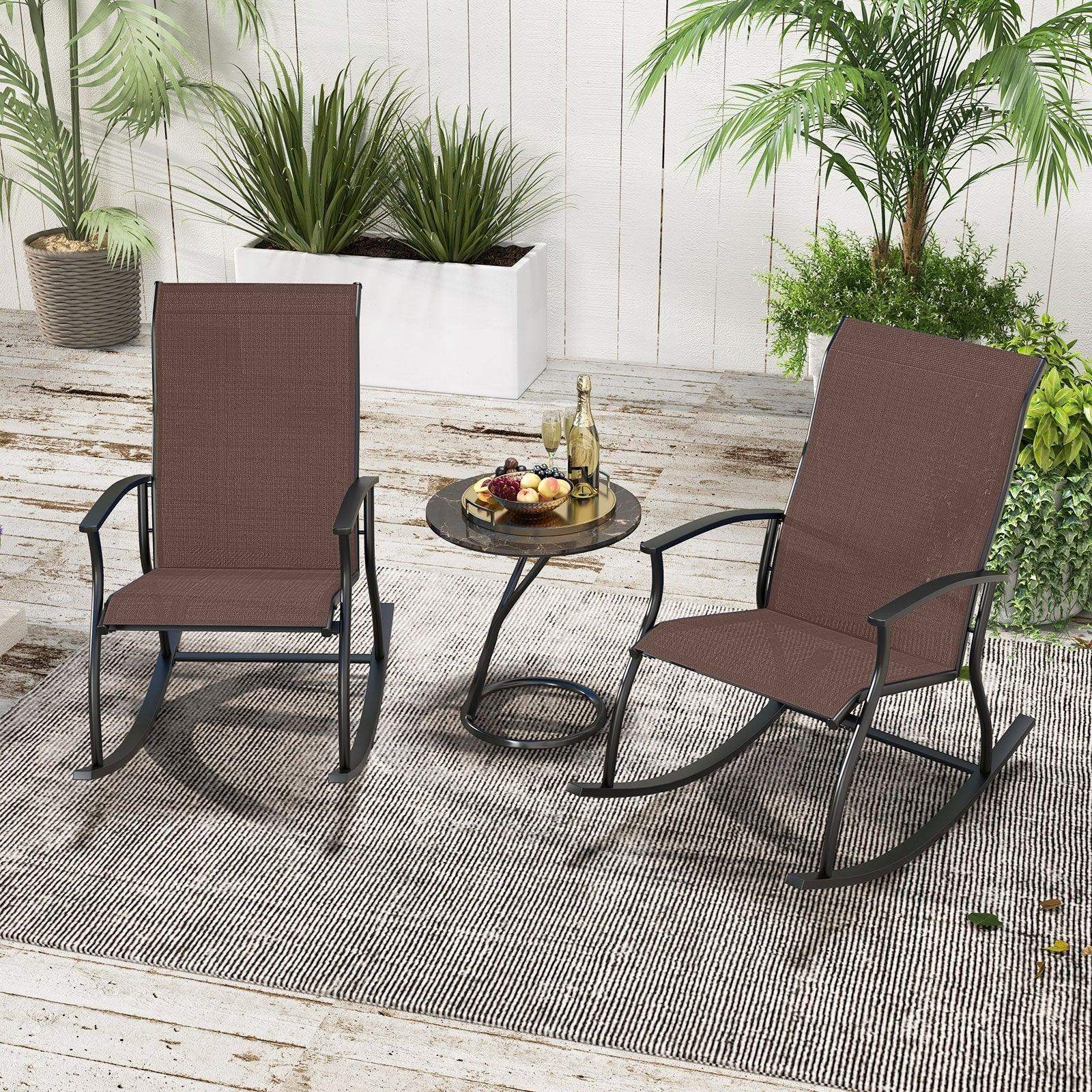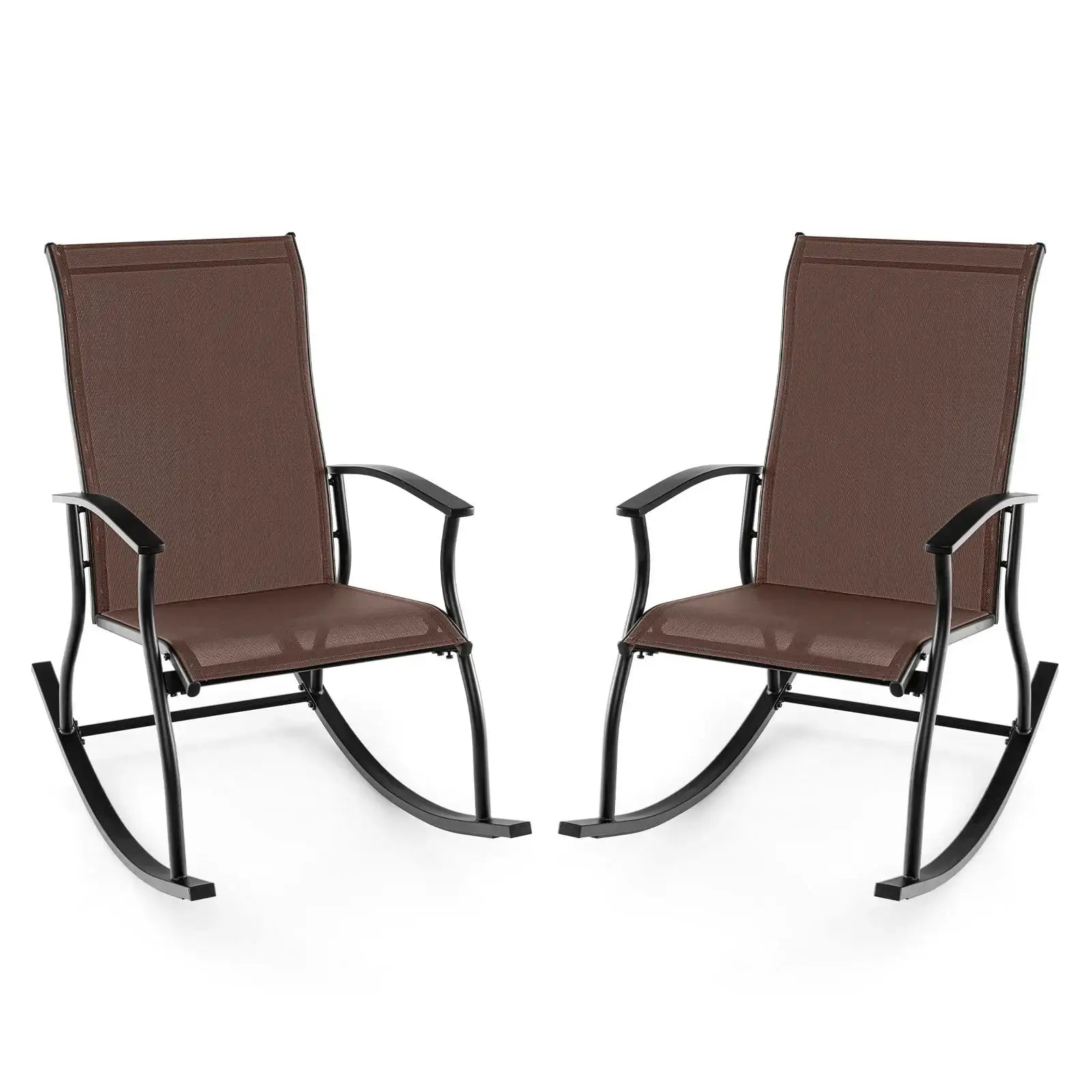 2 Pieces Outdoor Rocking Chairs with Breathable Backrest-Brown
