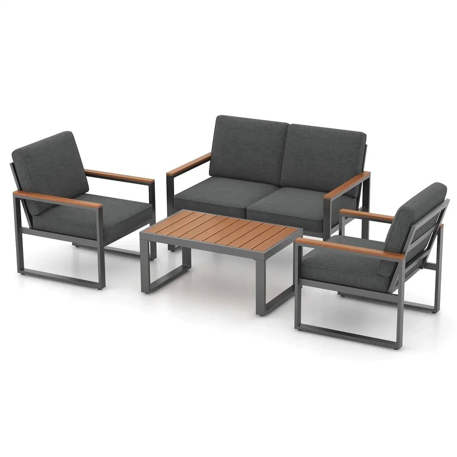 4 Piece Patio Aluminum Furniture Set with Armrests and Tabletop-Gray