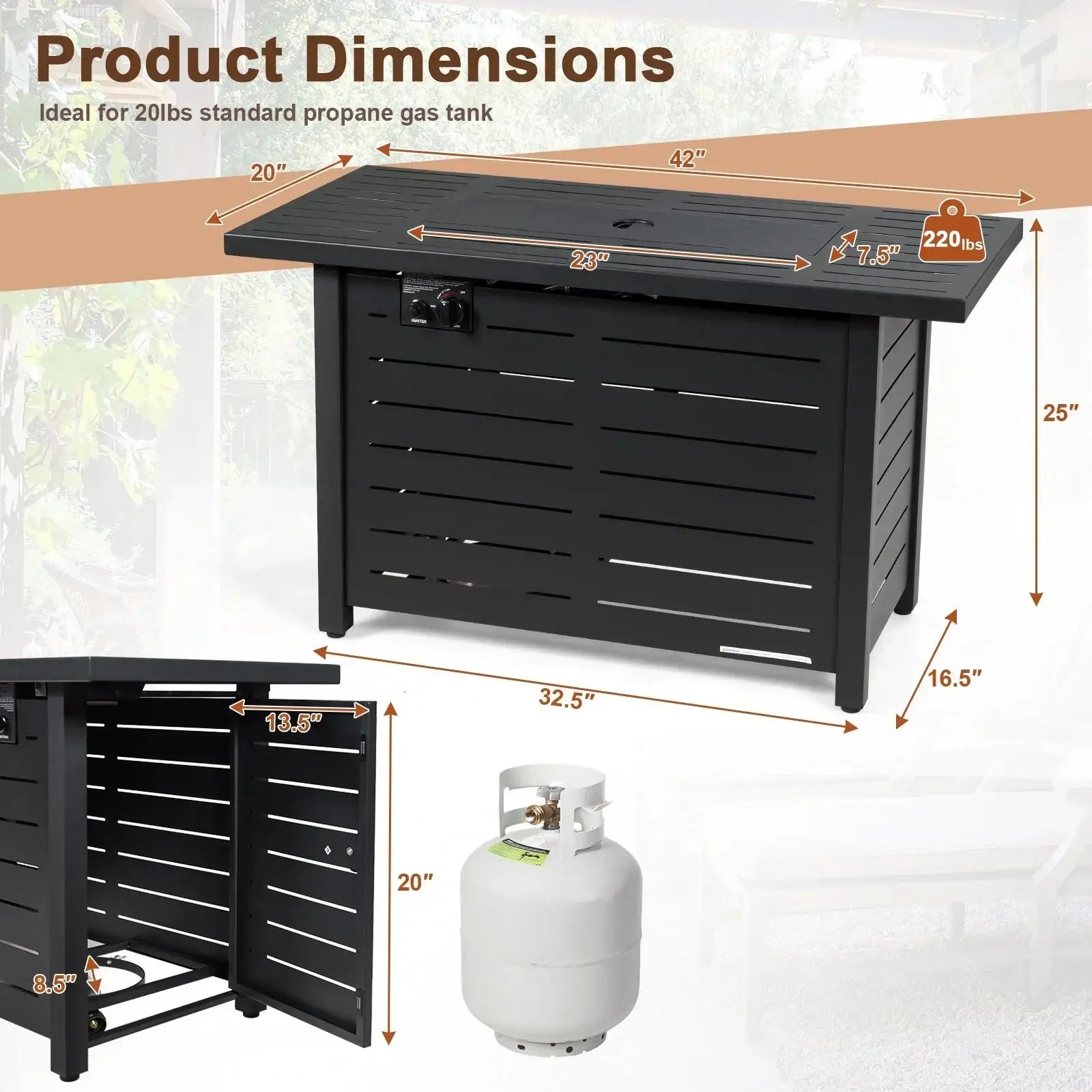42 Inch 60 000 BTU Rectangular Propane Fire Pit Table with Waterproof Cover