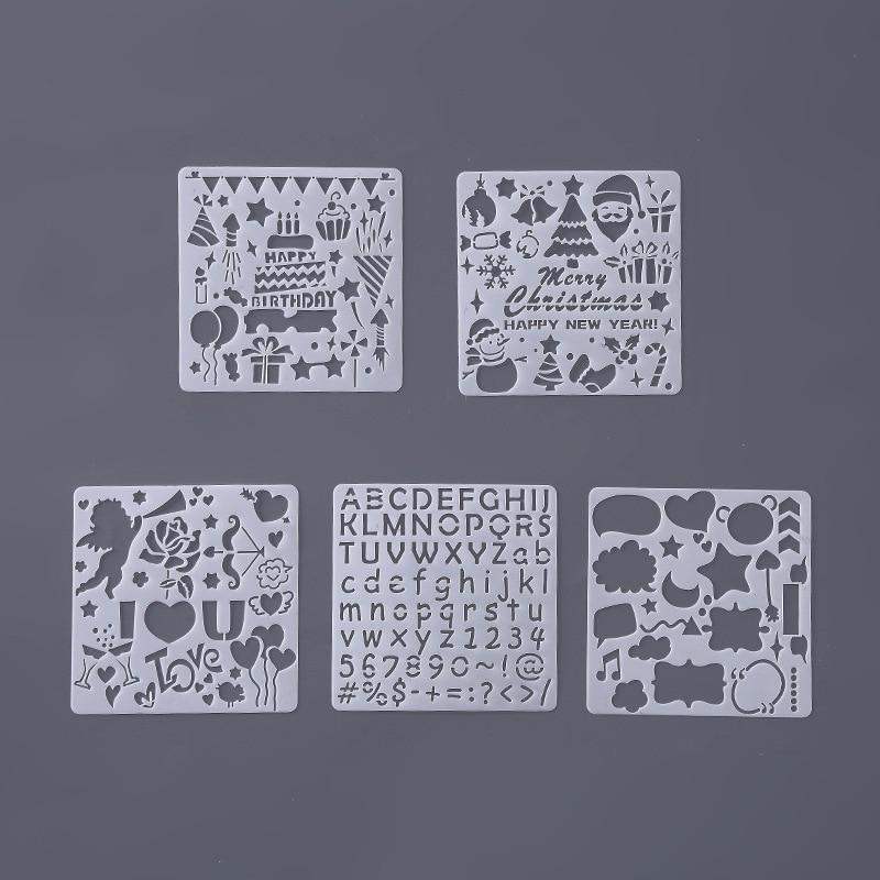 5Pcs/Set Children's Ruler Cutout Painting Template Hand Account Album Theme Lace Ruler Drawing Board Stencil Decoration Tools For Kids Drawing Education Toy