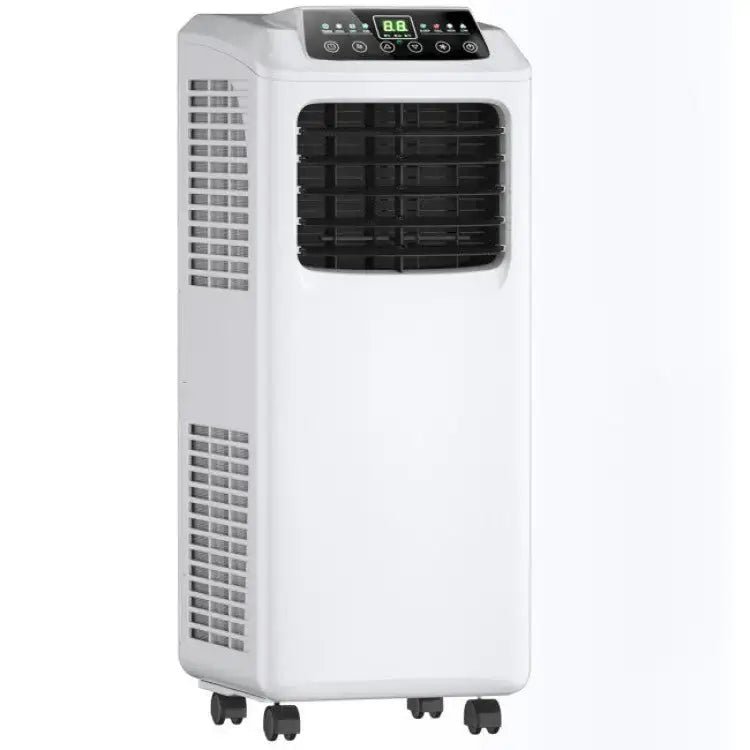 Stay cool and comfortable with this energy-efficient 9,000 BTU Portable Air Conditioner, designed to cool, dehumidify, and purify the air in spaces up to 250+ sq. ft. With multiple operating modes, adjustable fan speeds, and a user-friendly control system, this unit offers a versatile and cost-effective solution for your home or office. Its quiet operation, washable air filter, and portable design make it ideal for year-round use in any room. (Note: This product is not for sale in California.)