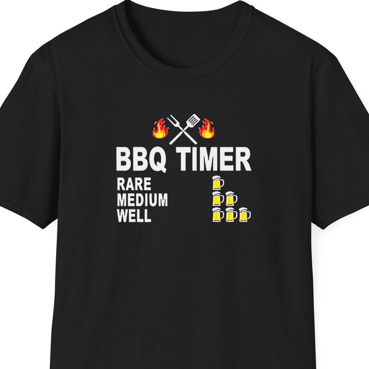 The "BBQ Timer" T-Shirt is the perfect blend of humor and grilling expertise. Featuring a fun beer-themed doneness chart, this shirt is a must-have for any pitmaster who enjoys a cold one while flipping burgers and smoking meats. Whether you like your steak rare, medium, or well-done, this hilarious tee keeps your BBQ game on point.