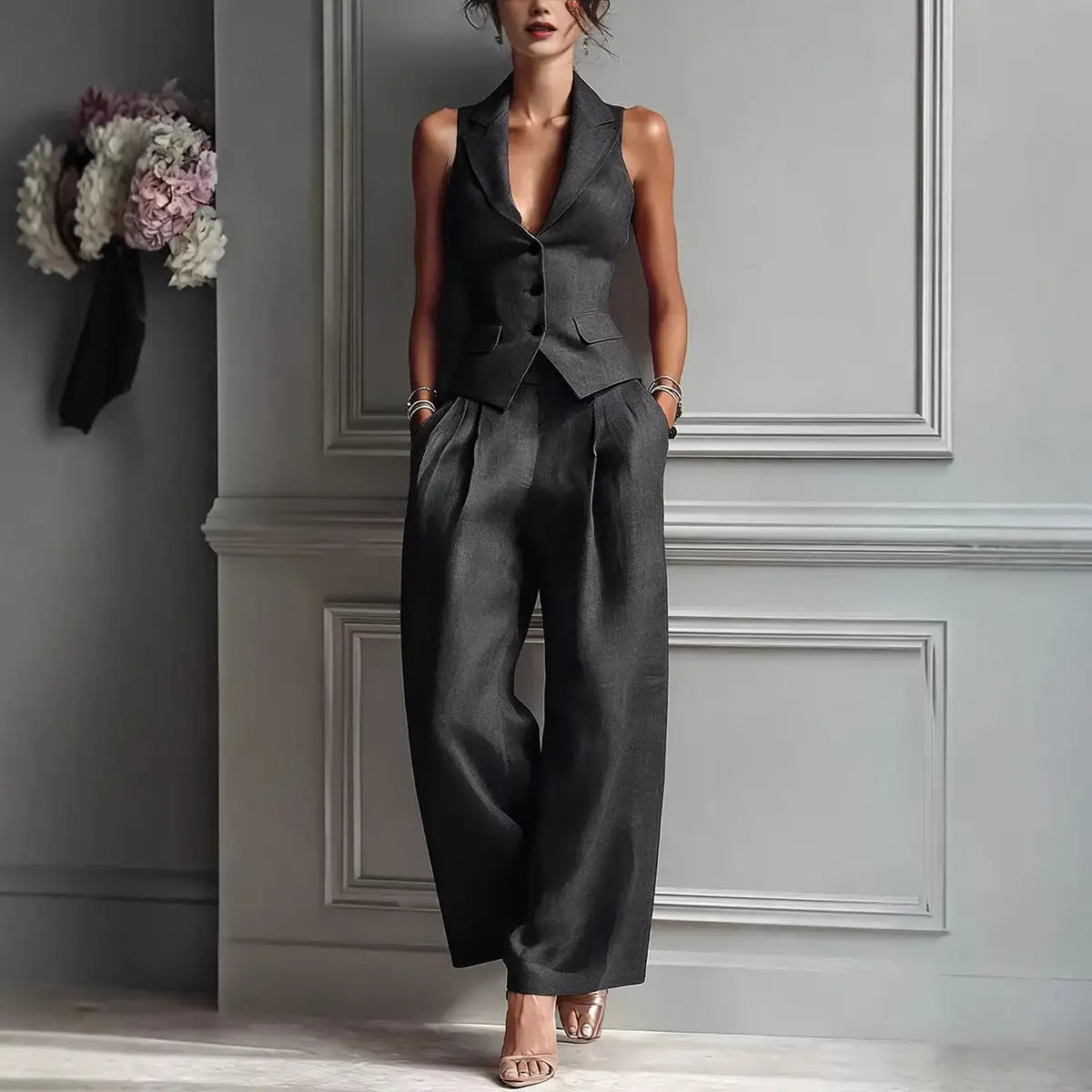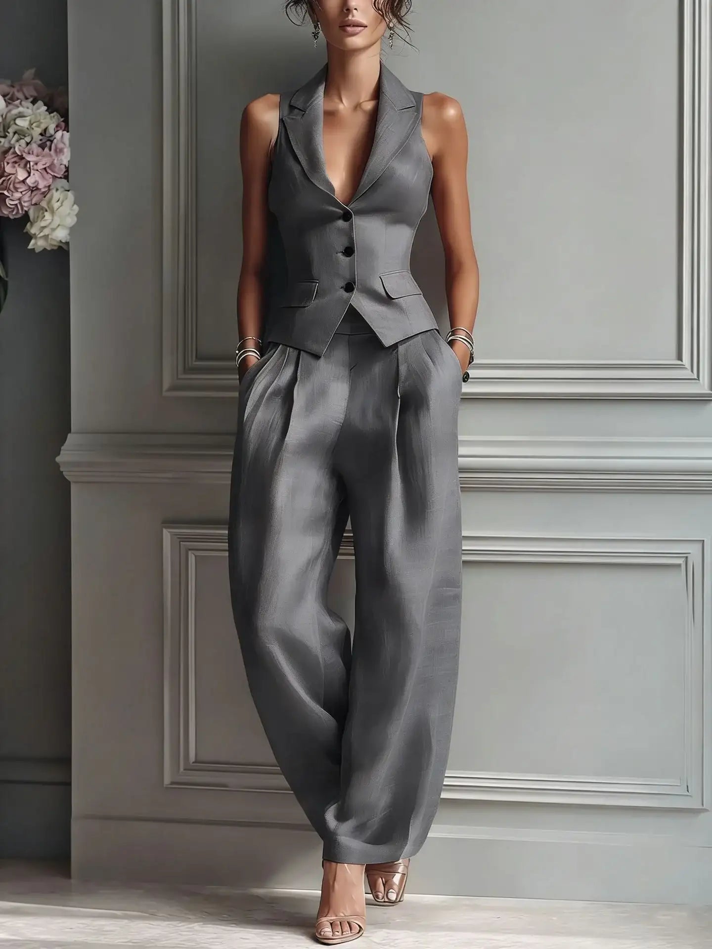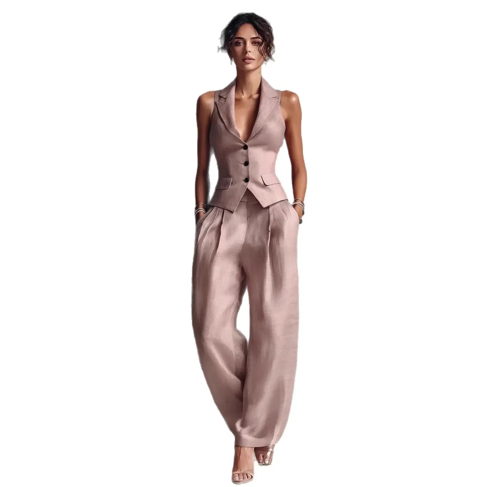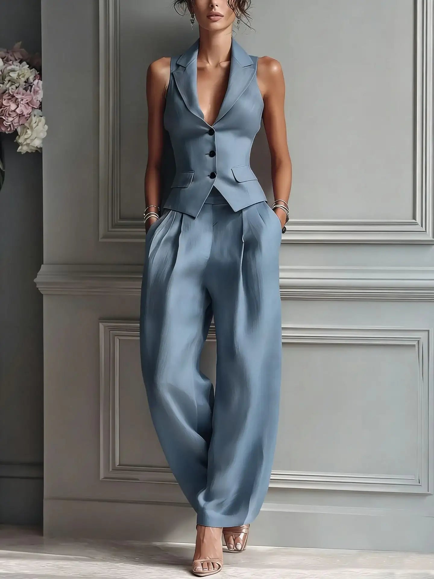 Casual Single-breasted Vest And Casual Pants Set (see size chart under more details)