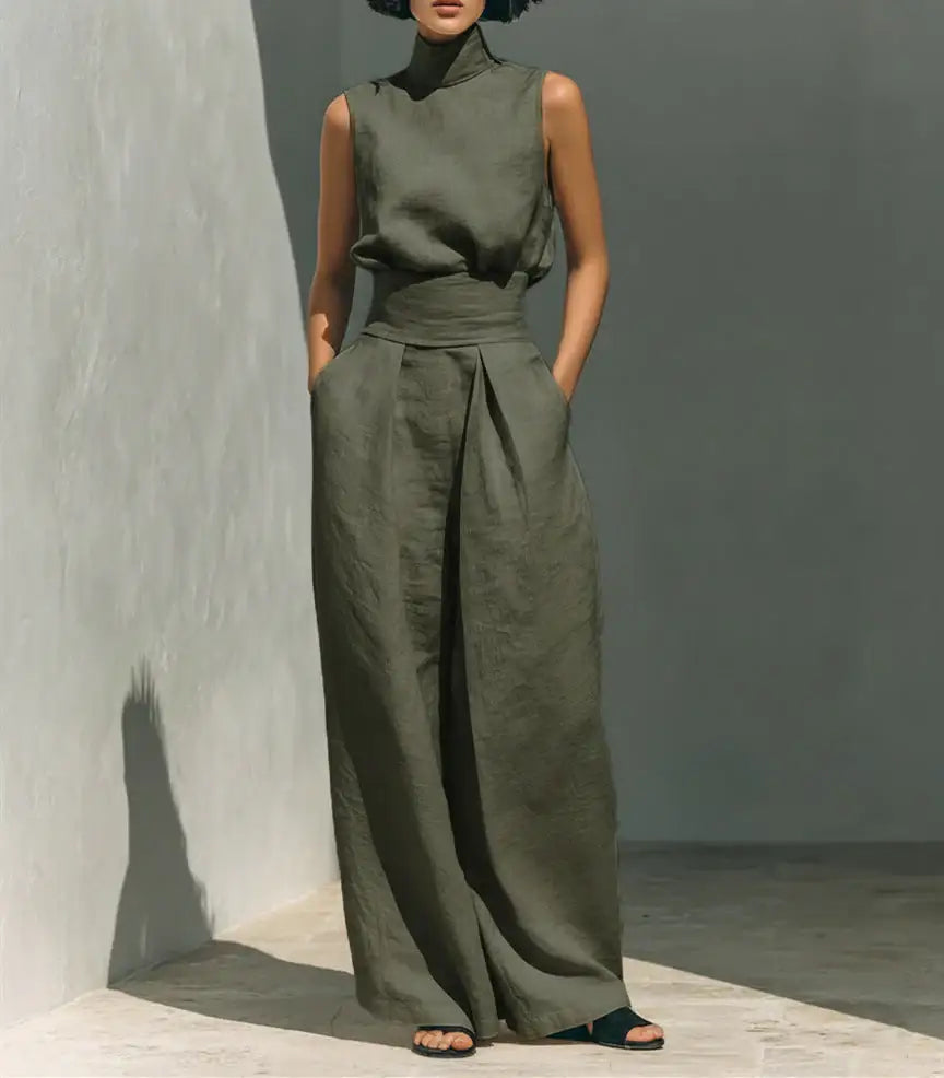 Casual Sleeveless Suit Summer Stand-up Collar Pullover Top And Loose Straight-leg Trousers Women's Clothing (see size chart under more details)