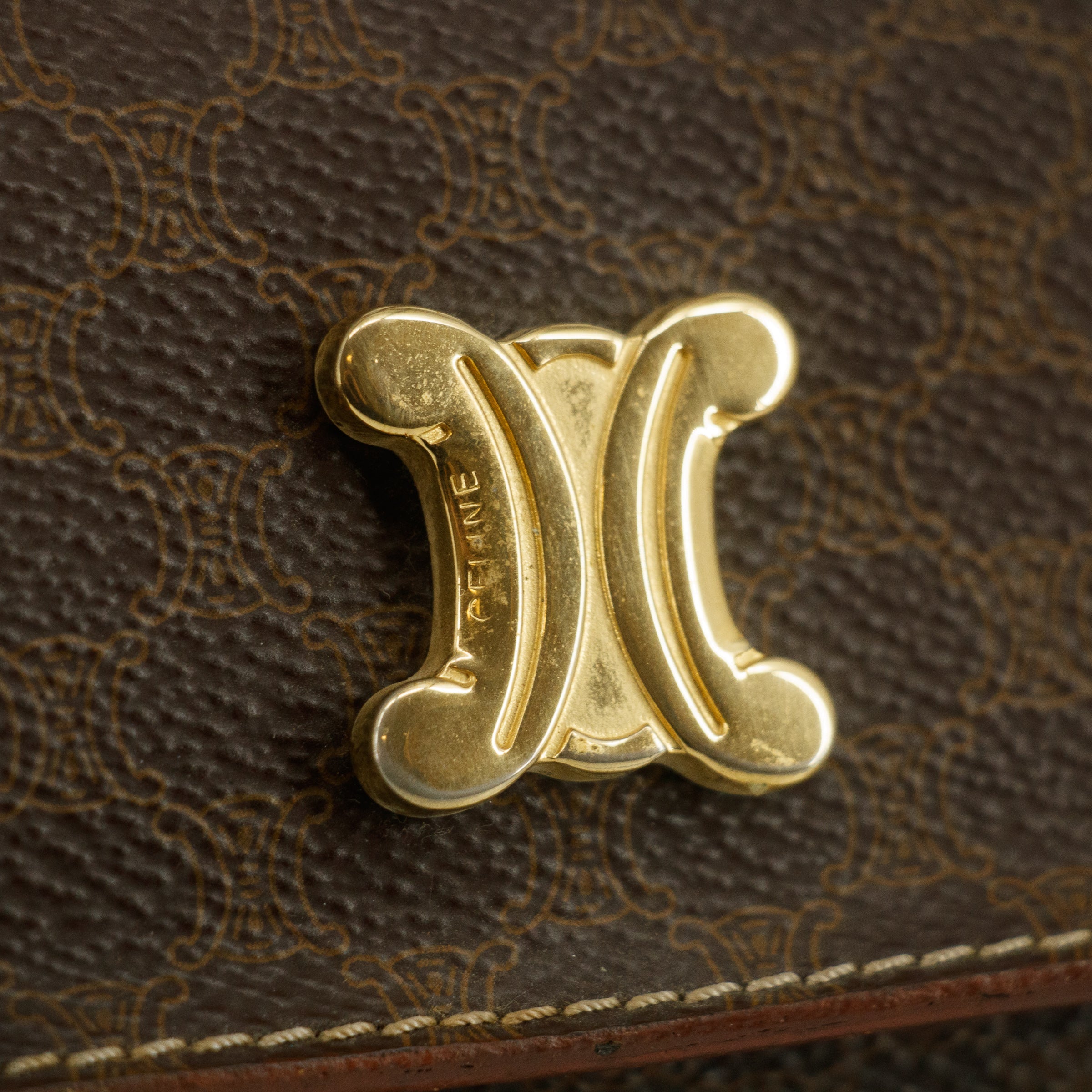 • Celine Macadam Triomphe Brown Leather Boston Bag -SKU #5367