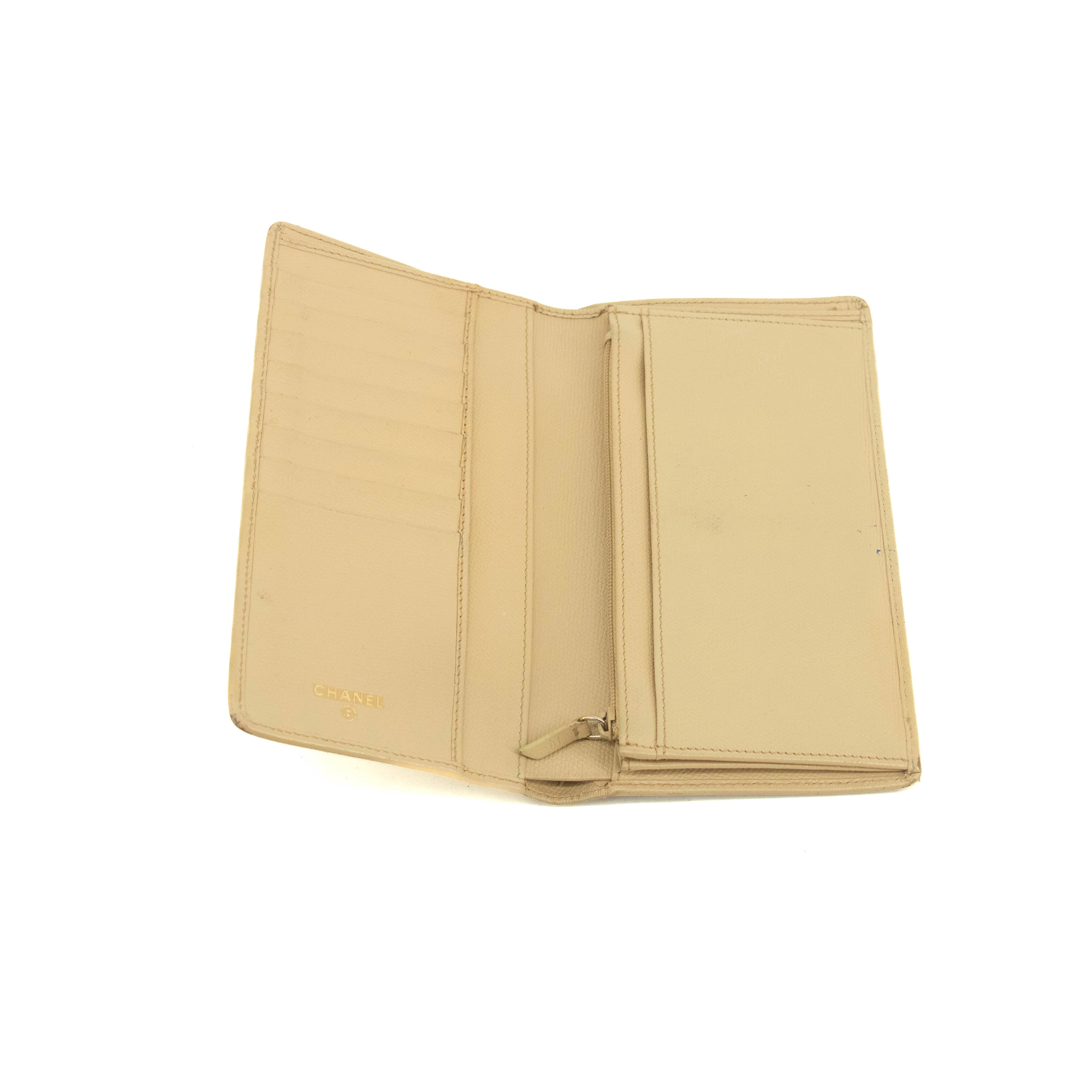 Chanel Beige Leather Long Bifold Wallet #3719