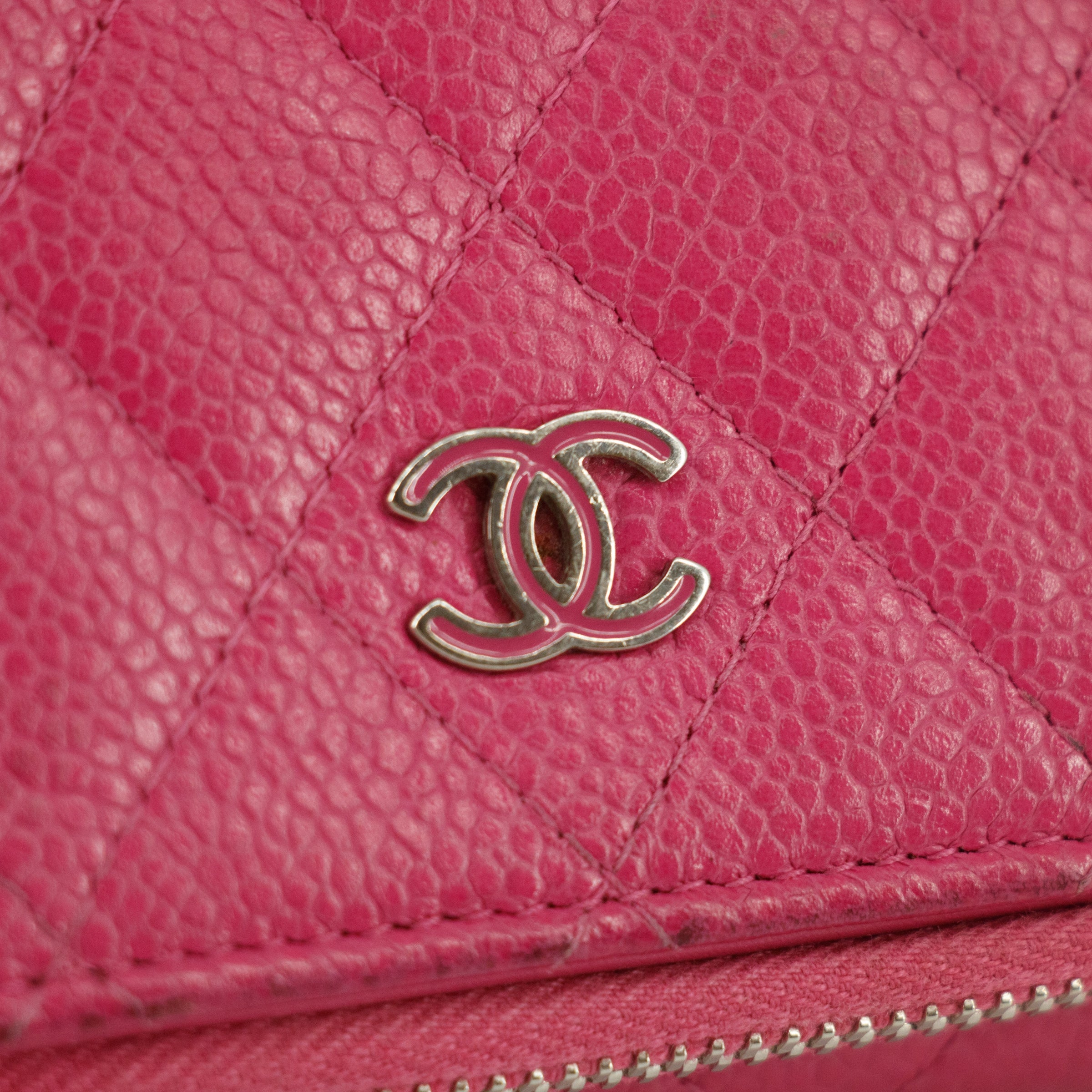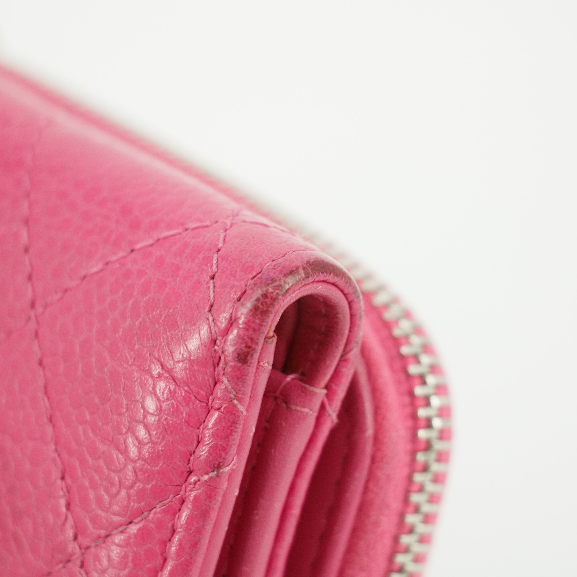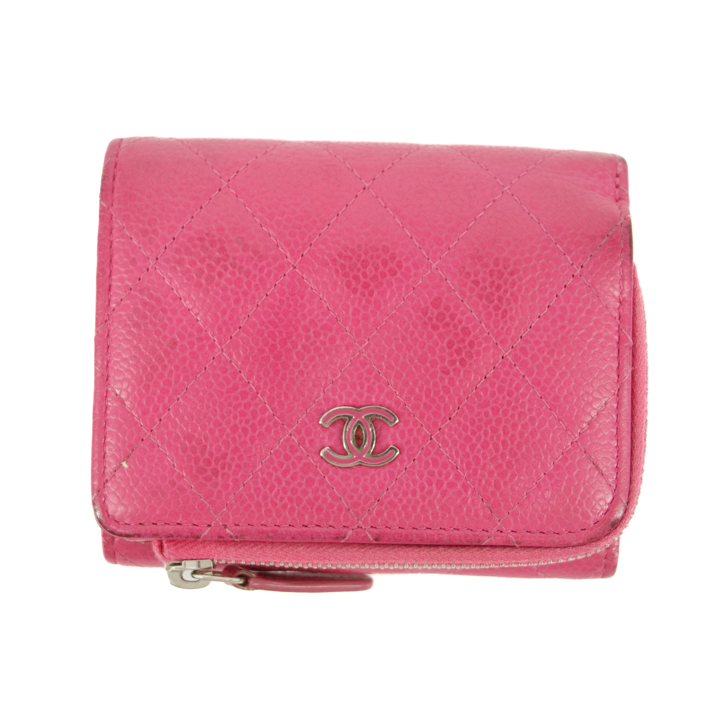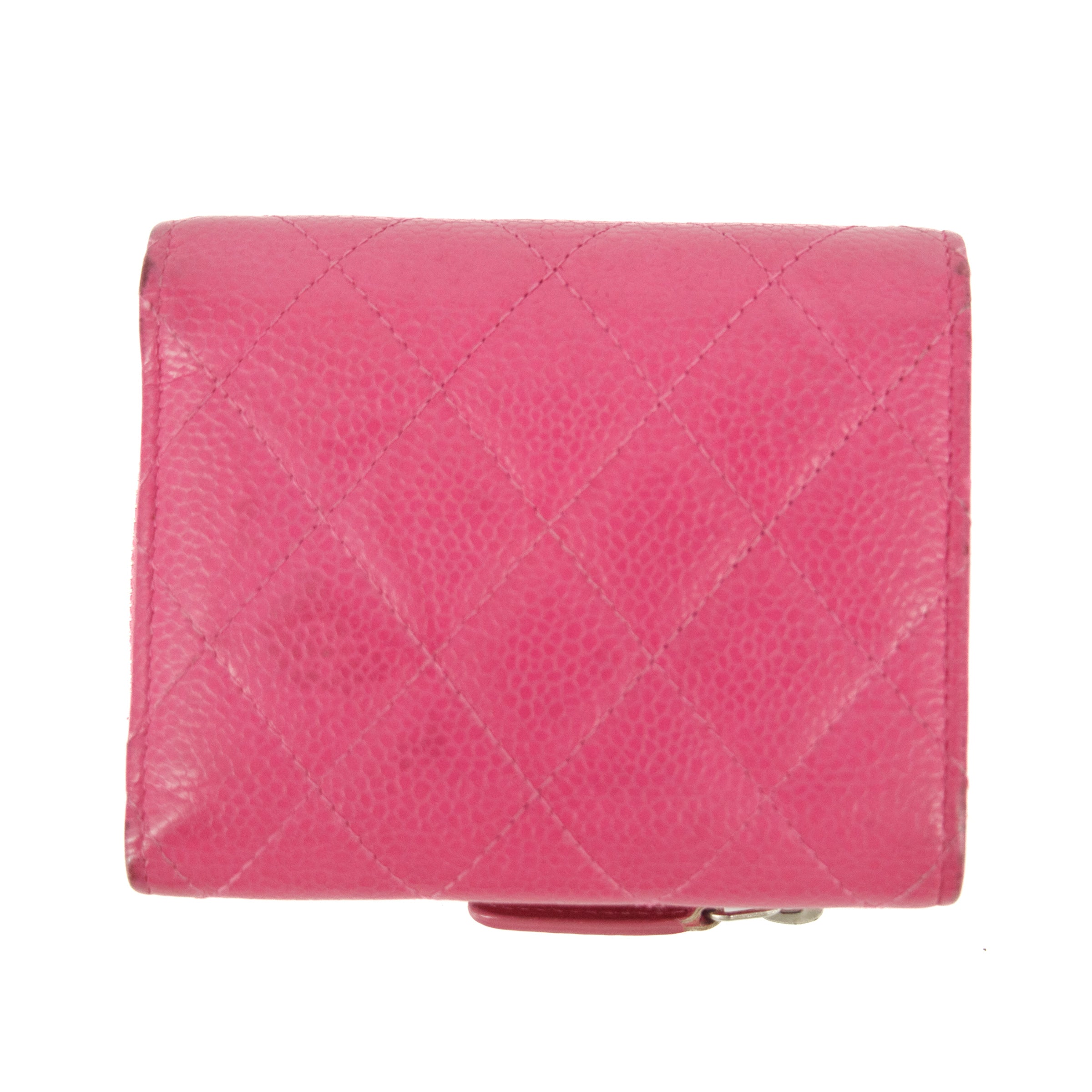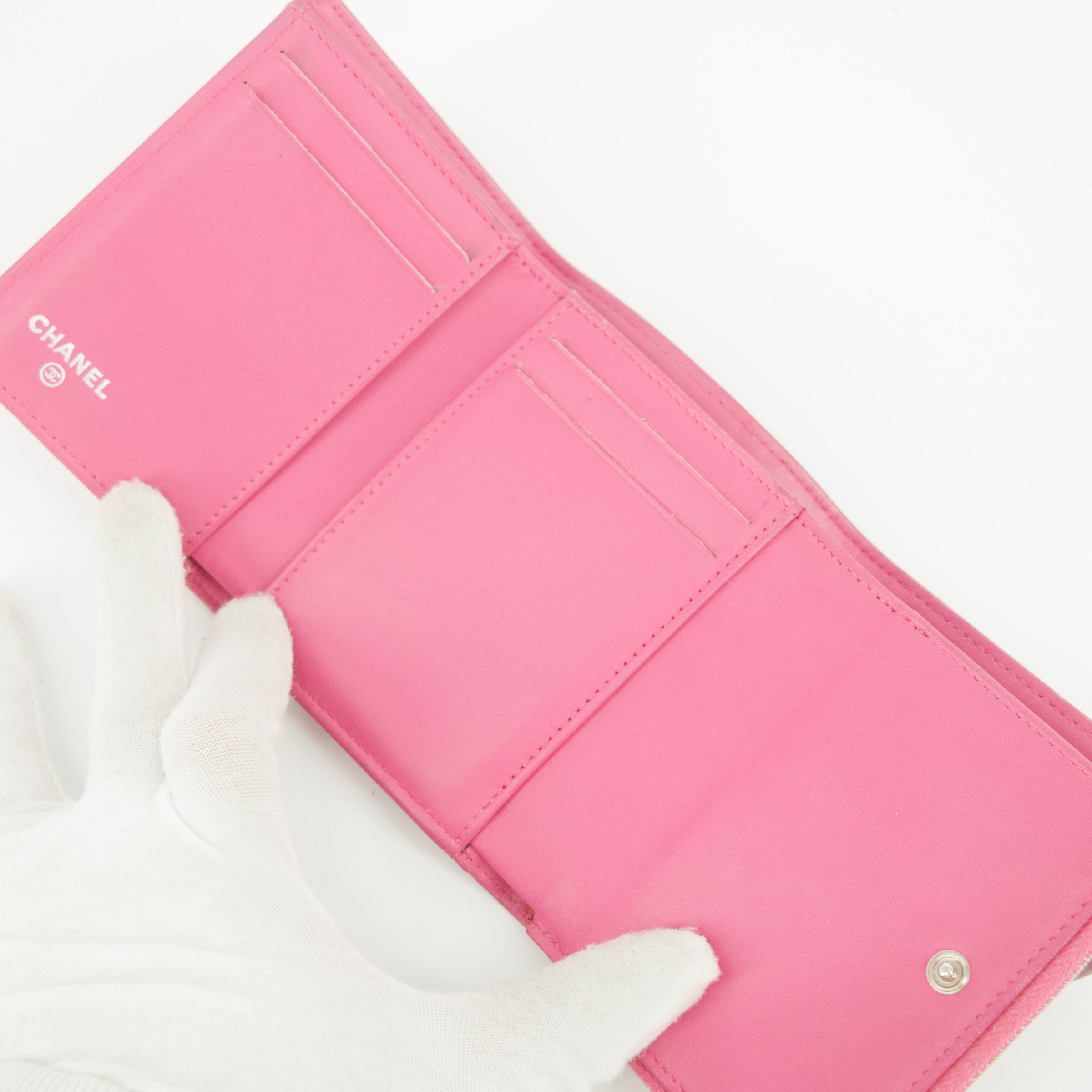 Chanel Caviar Calfshin Leather Pink Trifold Wallet #5342