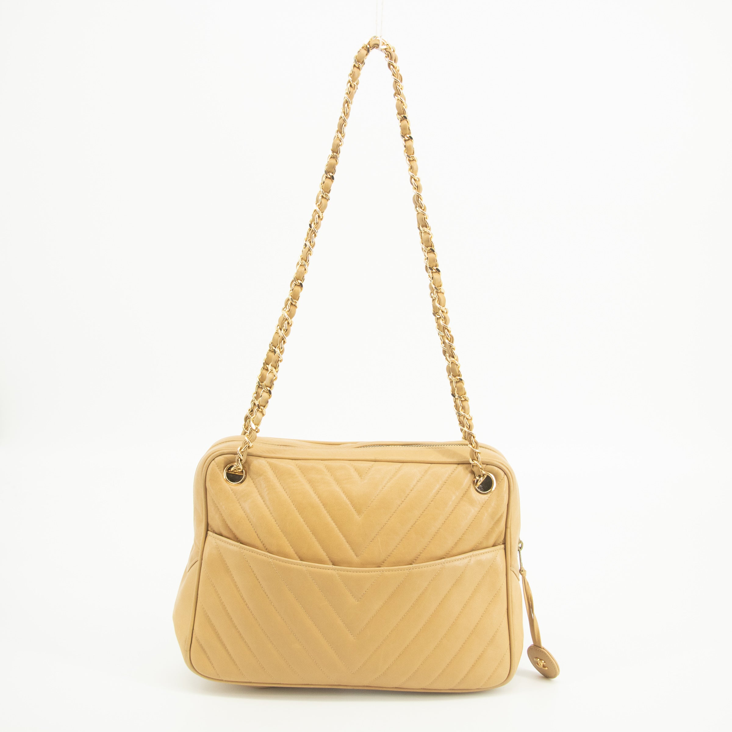 • Chanel Lambskin Chevron Beige Camera Bag -SKU #2567