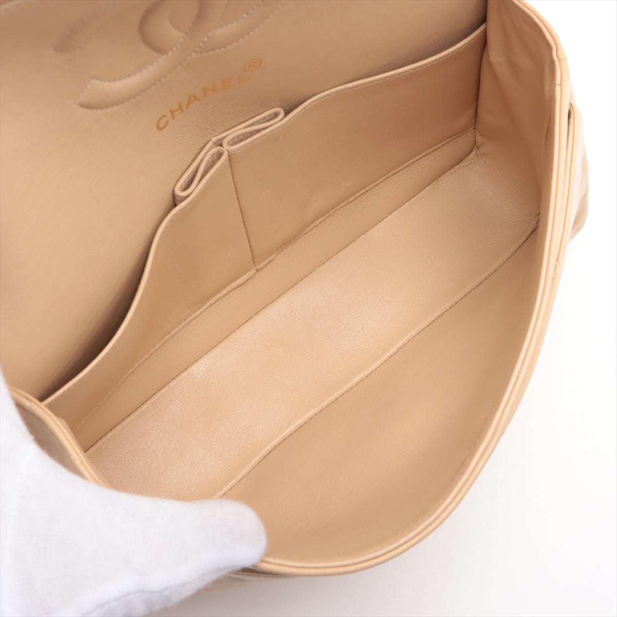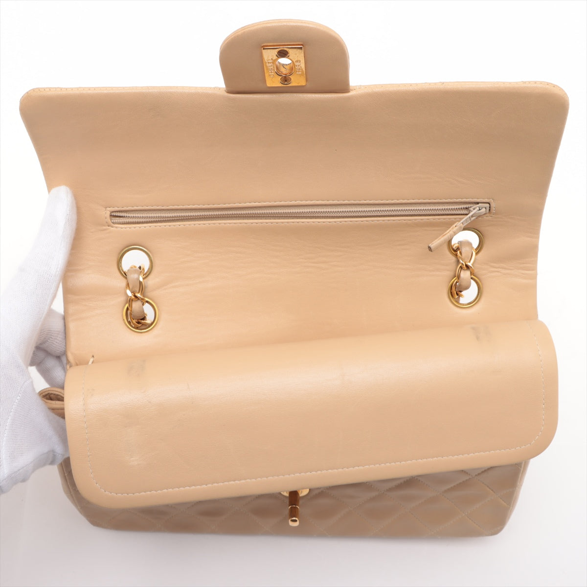 Chanel Matelasse 25 Lambskin Double Flap Double Chain Bag Beige Gold Metal Fittings 4163336 A01112 #2427