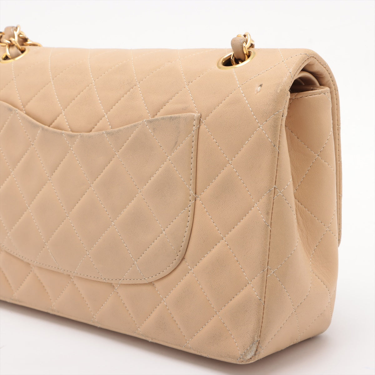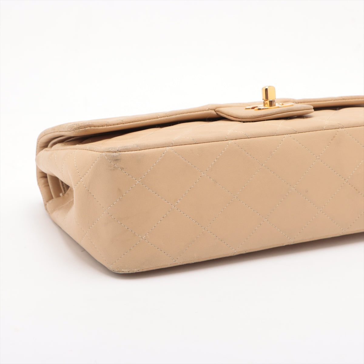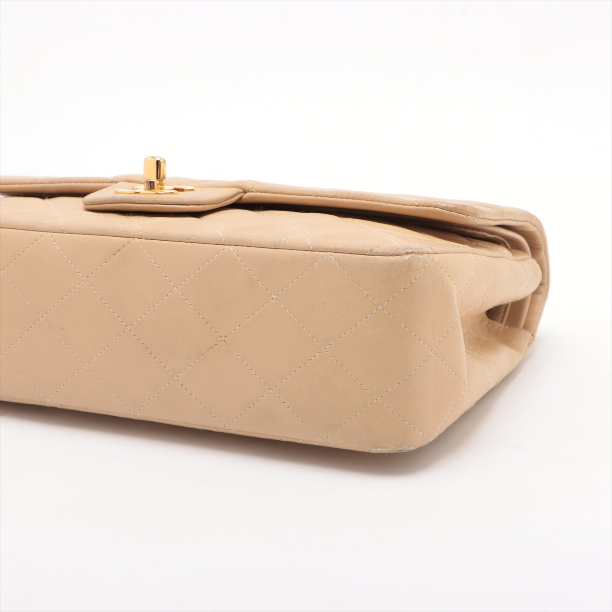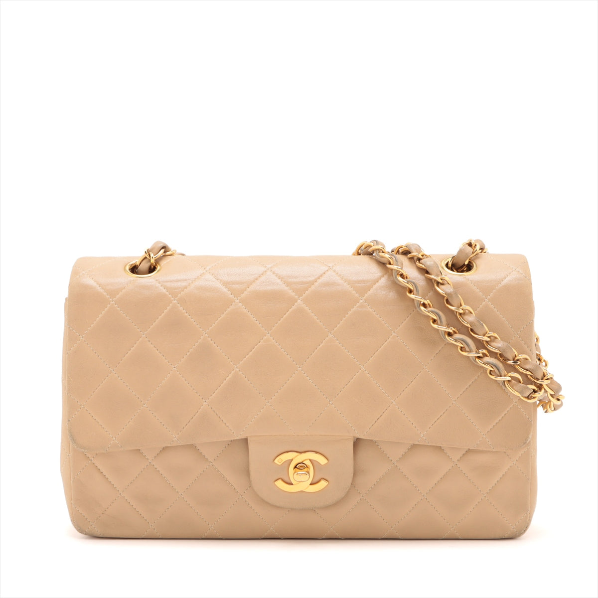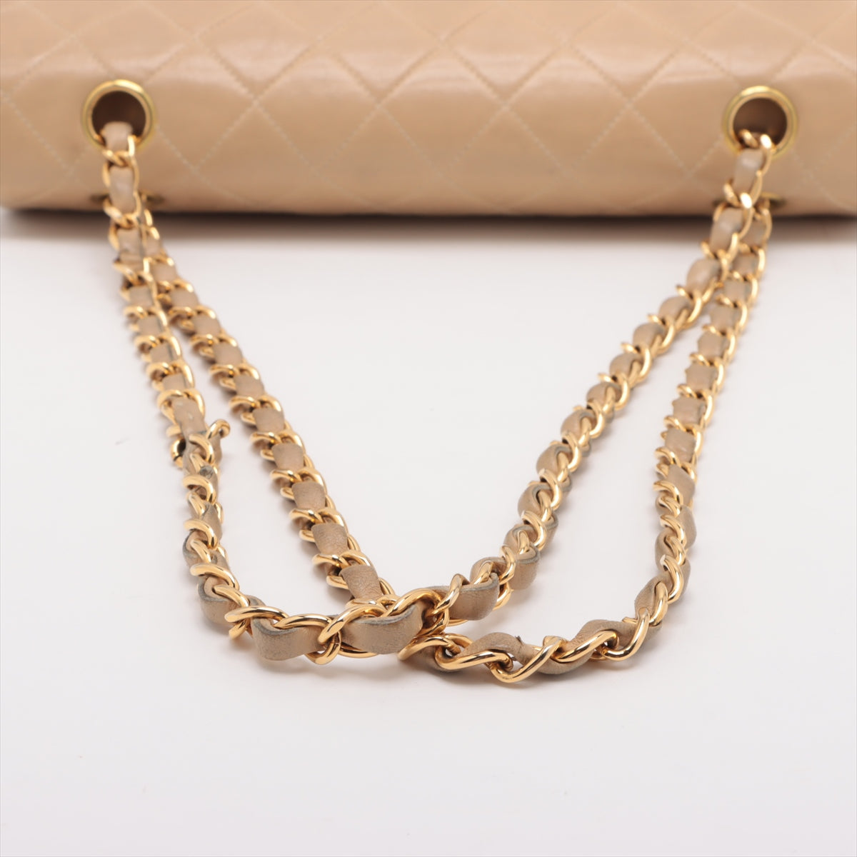 • Chanel Matelasse 25 Lambskin Double Flap Double Chain Bag Beige Gold Metal Fittings 4163336 A01112 -SKU #2427