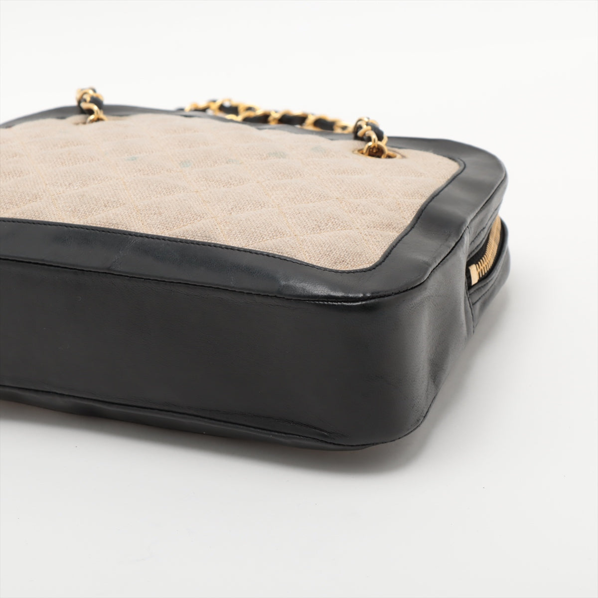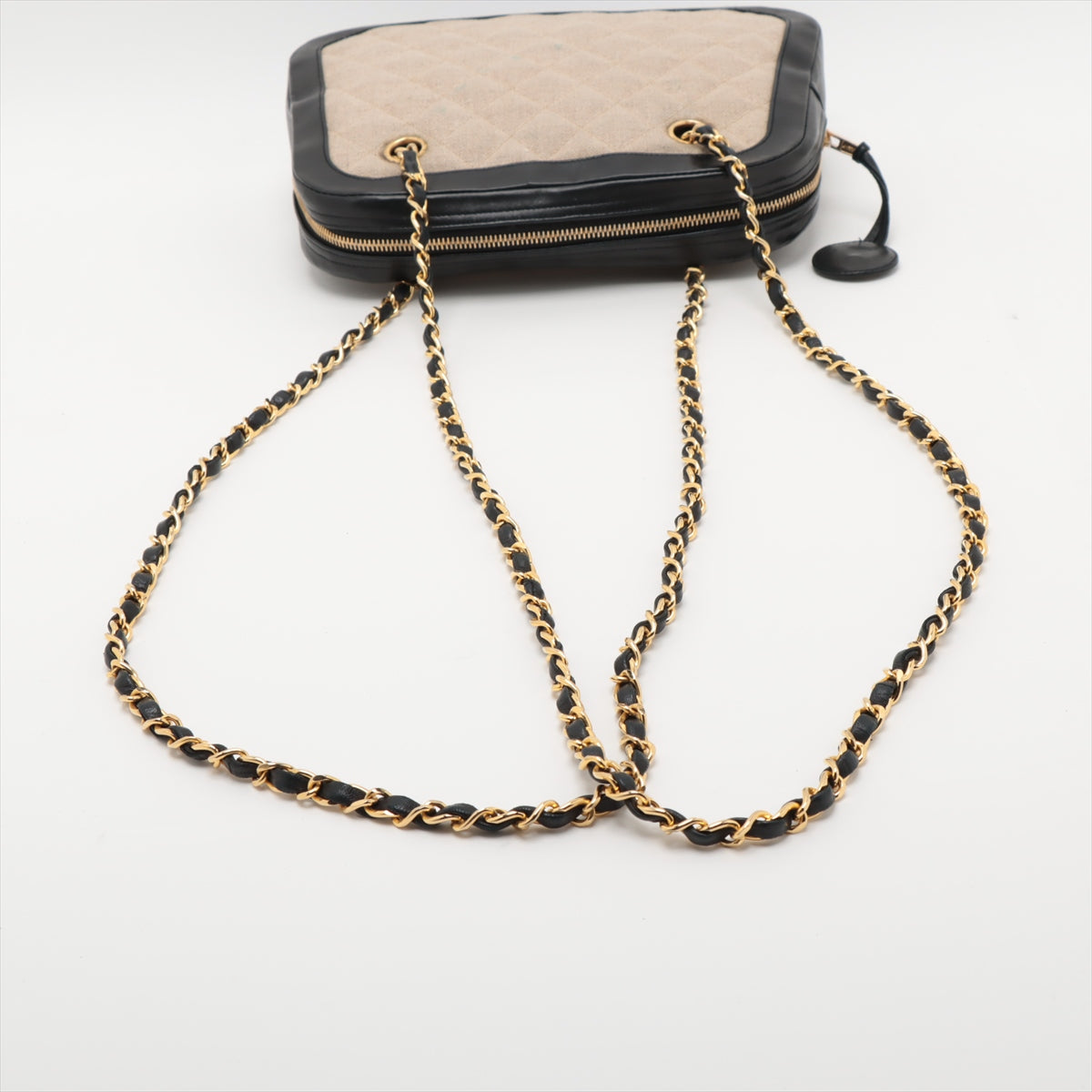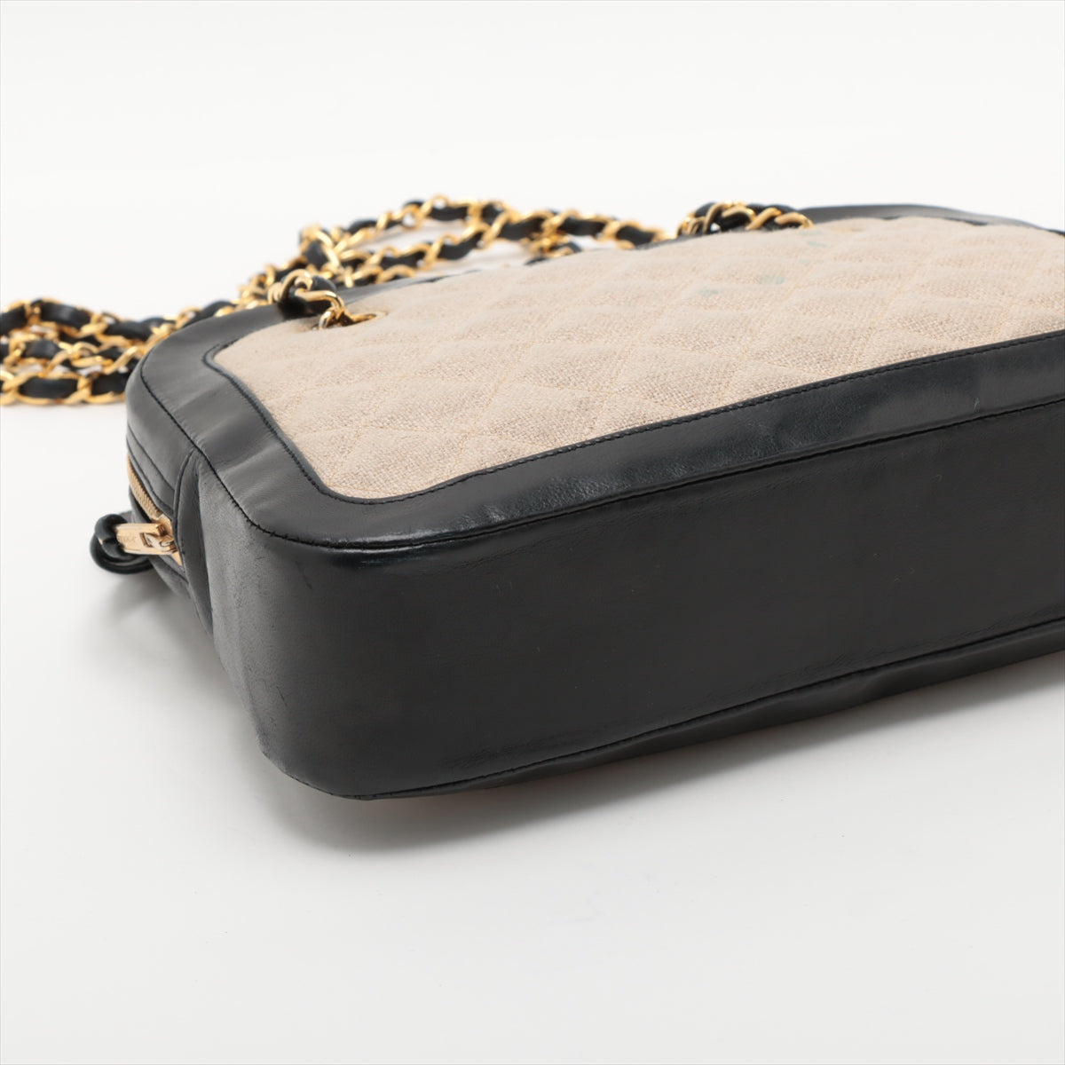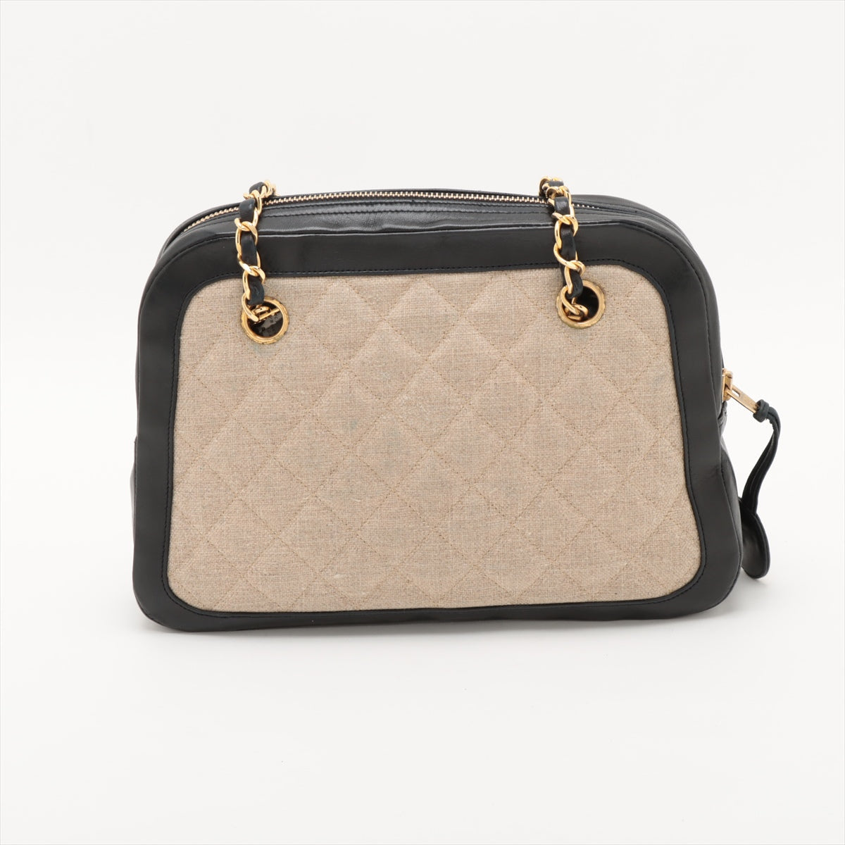 Chanel Matelasse Canvas & Leather Chain Shoulder Bag Black x Beige Gold Metal Fittings 1 Series #2509