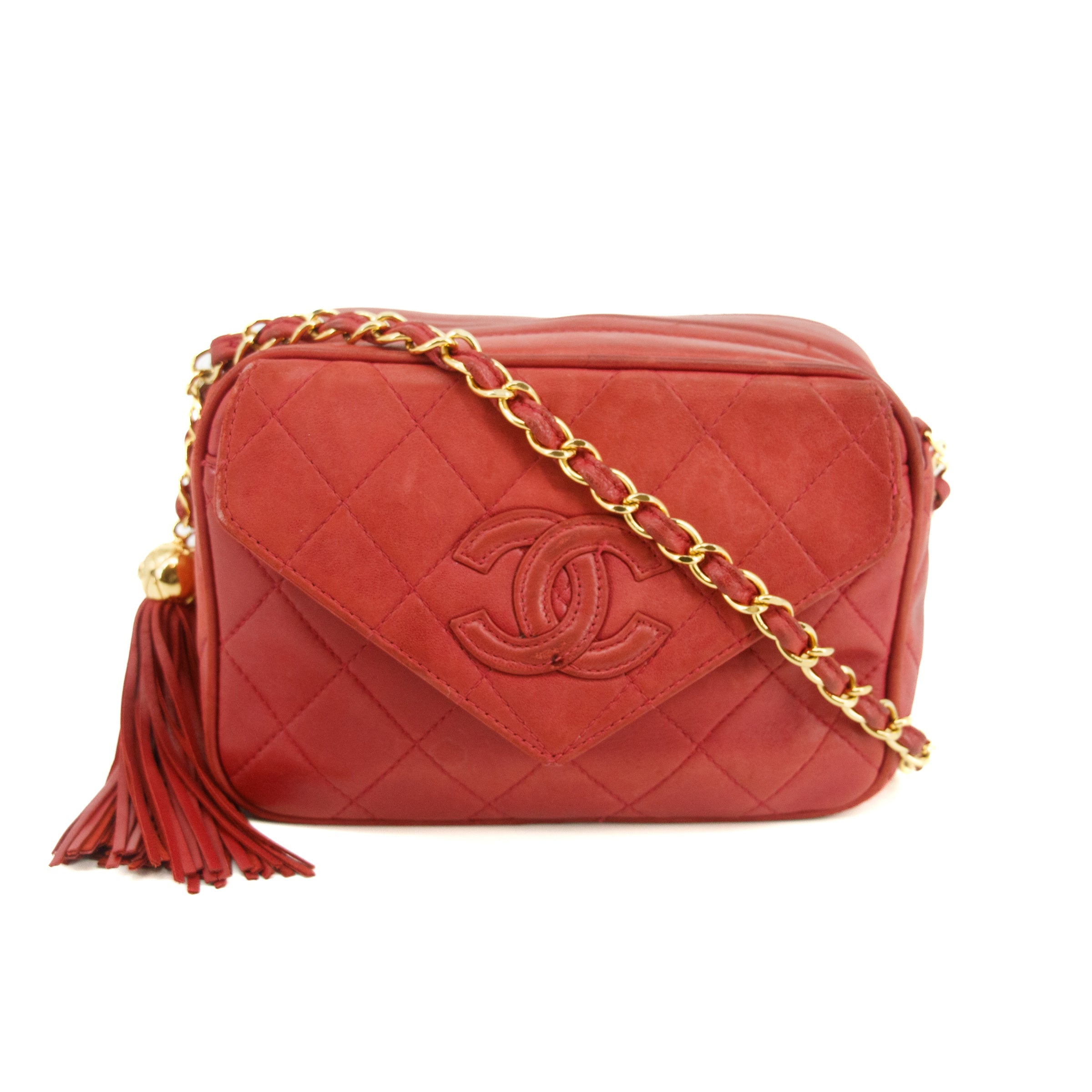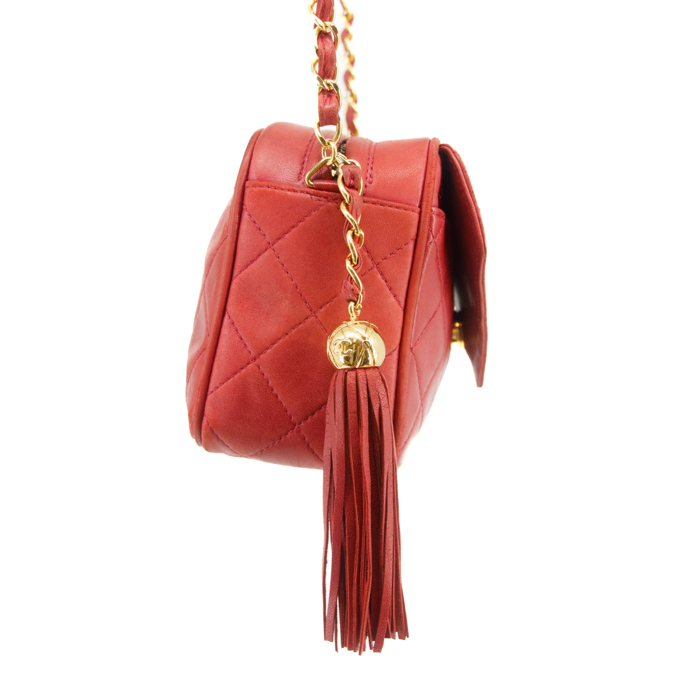 • Chanel Matelasse Lambskin Tassel Camera Shoulder Bag Red -SKU #3637