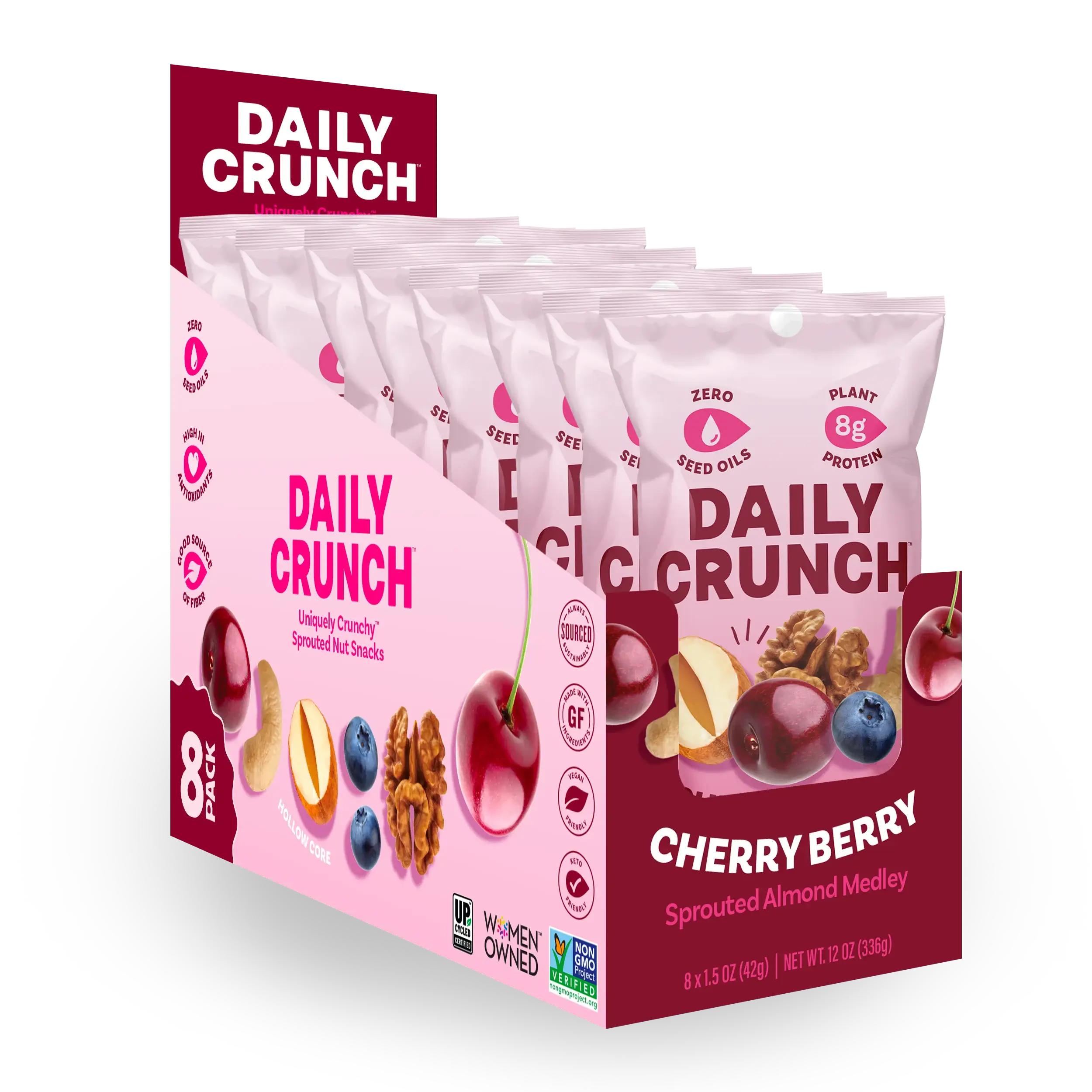 BERRY BEST NUT MIX! Upgrade your trail mix with the berry best sprouted nut medley! This Uniquely Crunchy™ mix blends sprouted almonds, walnuts, and cashews with dried cherries and blueberries. Free from artificial additives, colors or sweeteners, every bite is a promise of wholesome goodness. Get Crunching!
