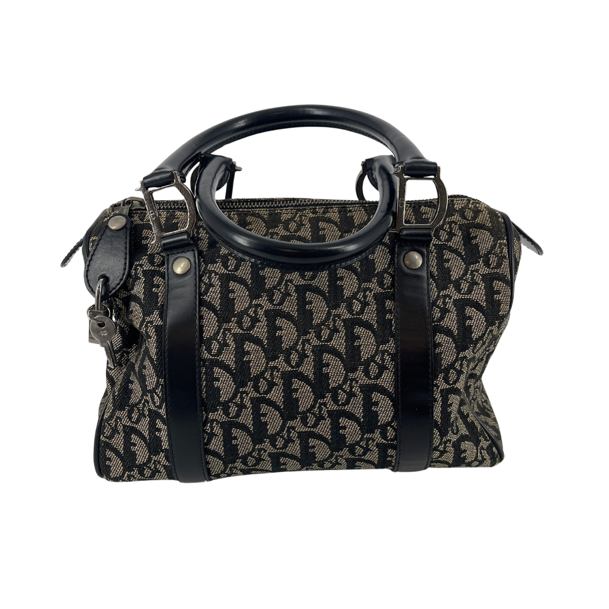 • Christian Dior Black Canvas x Leather Trotter Mini Boston Bag -SKU #7700