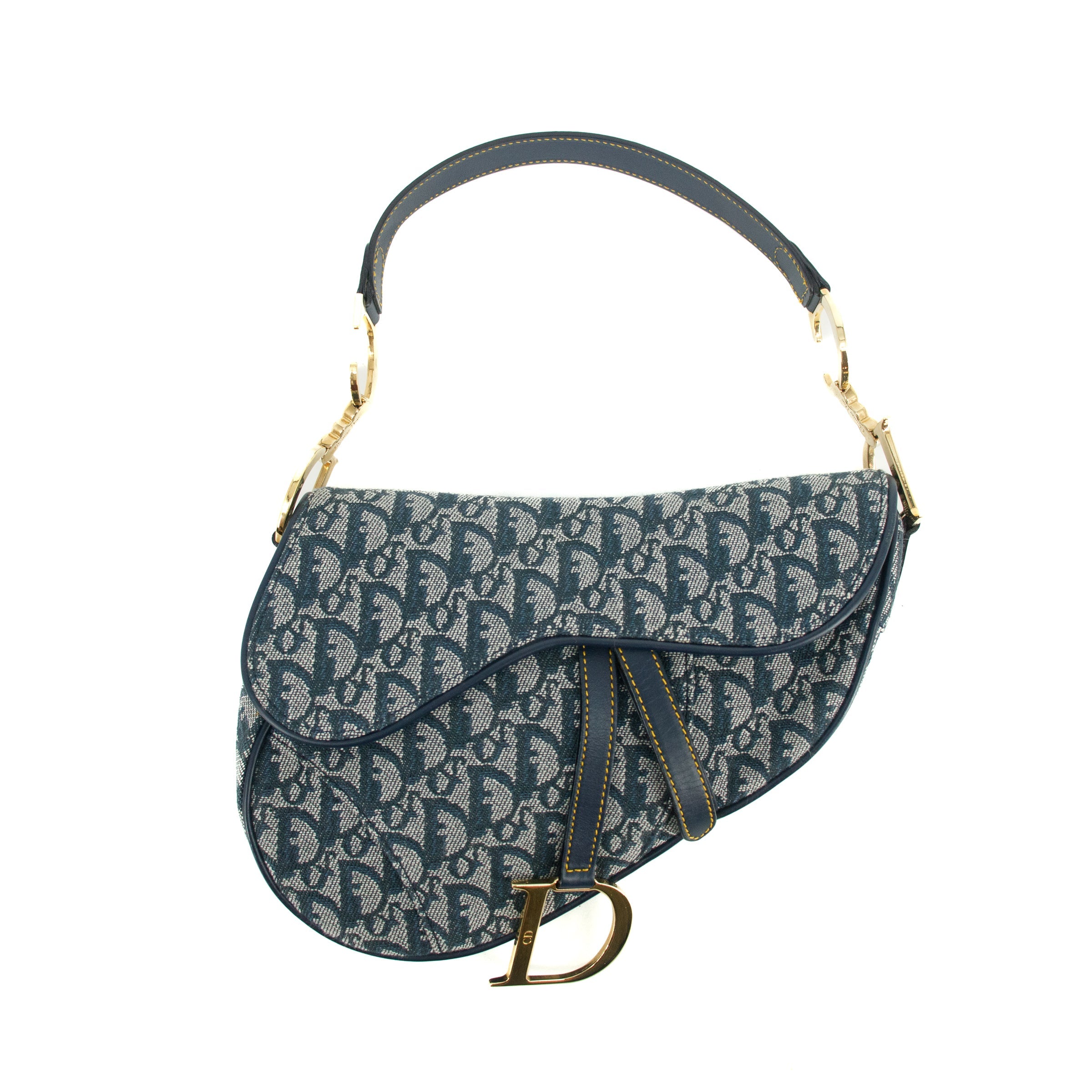 • Christian Dior Classic Oblique Trotter Blue Canvas Saddle Bag SKU-#3707