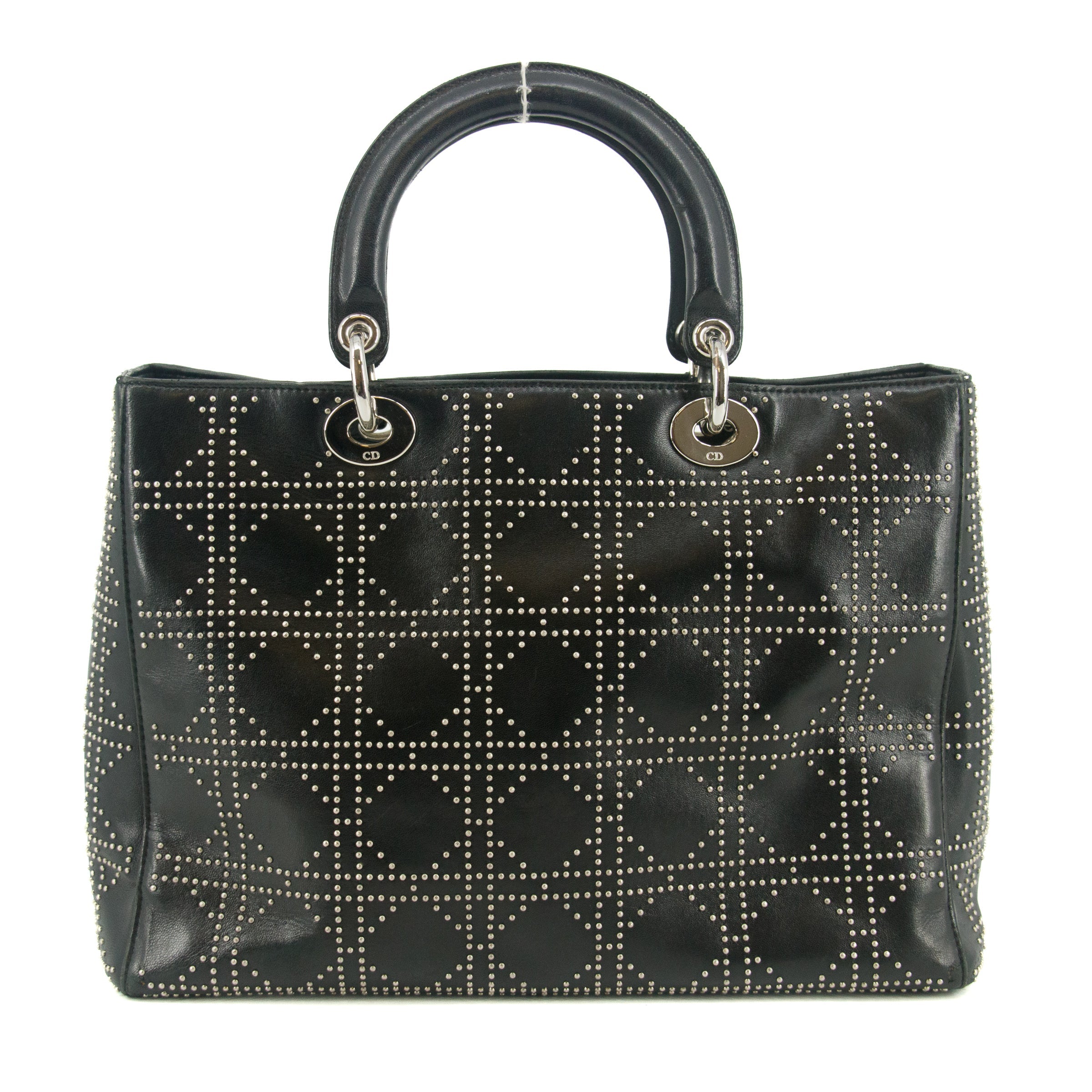 • Christian Dior Leather Studded Black Lady Dior Tote Bag -SKU #8532