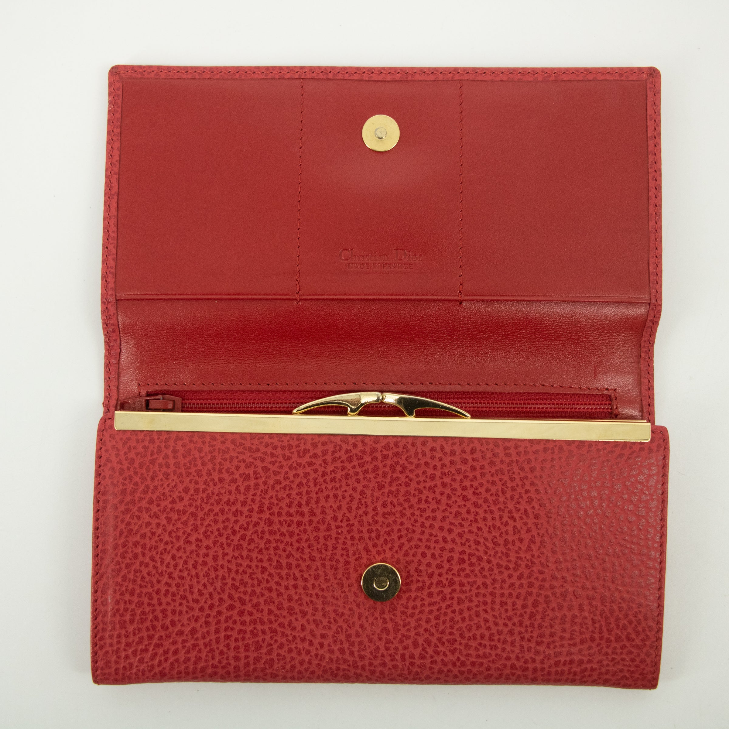 • Christian Dior Red Leather Long Wallet -SKU #2465