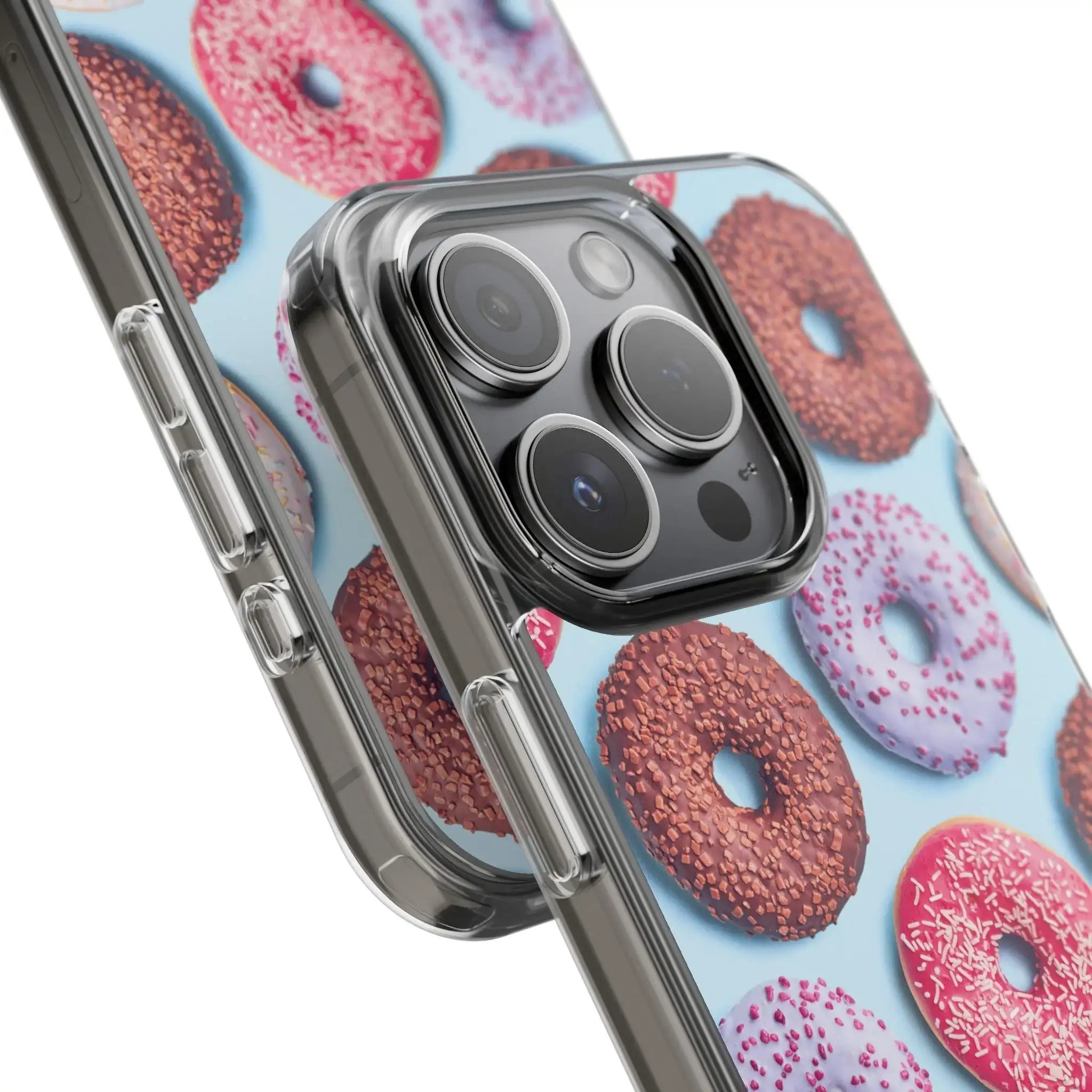 • Clear and Stylish Design: Show off your phone's original color with a sleek, transparent case adorned with a cute donut graphic.