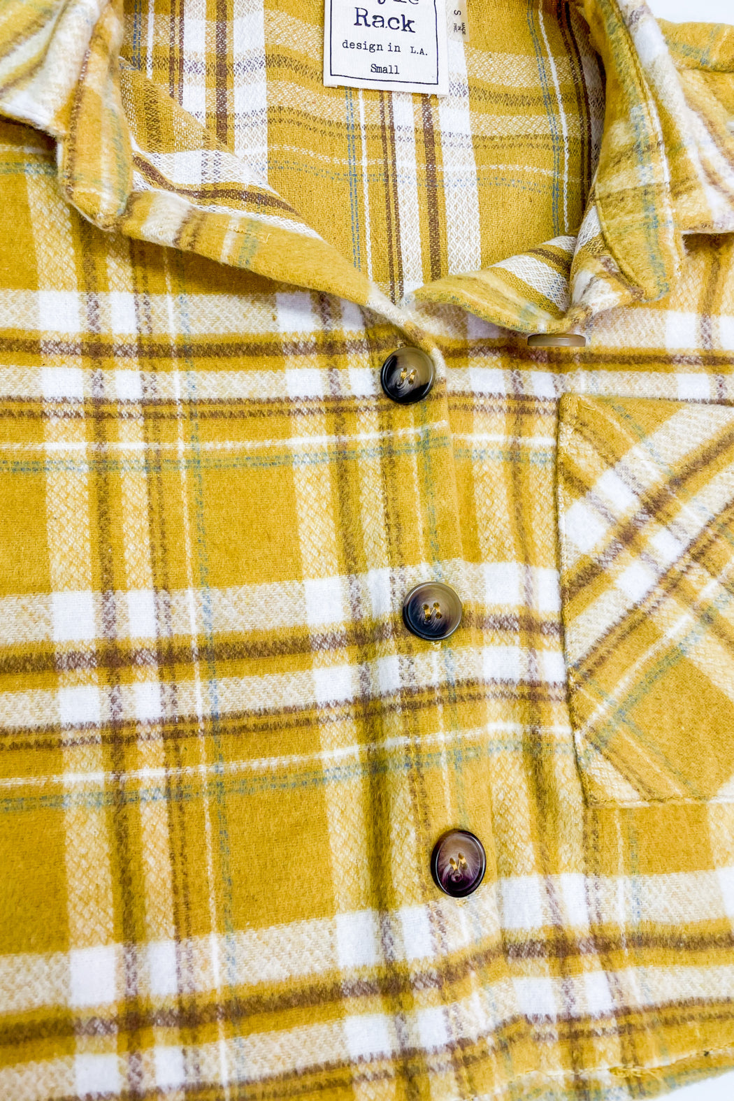 Cropped button up plaid shacket ,Mustard 100% Polyester Made in China Read more