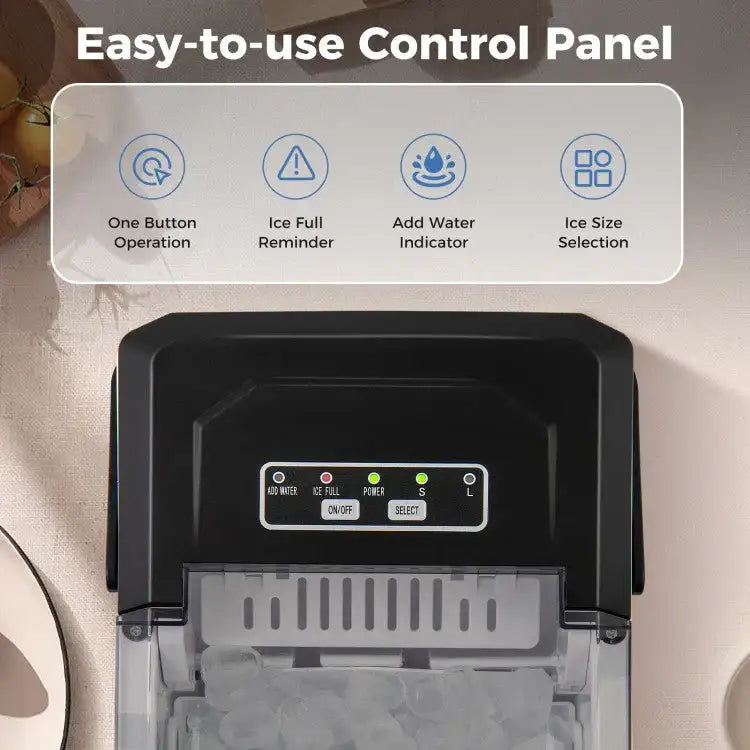 • Easy One-Button Operation: Simple control panel with indicator lights for "ICE FULL" and "ADD WATER" alerts—perfect for hassle-free use.