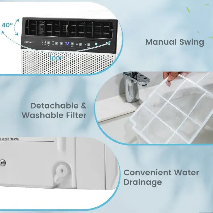 10,000 or 12,000 BTU (ASHRAE) options for cooling spaces up to 450–550 sq. ft.