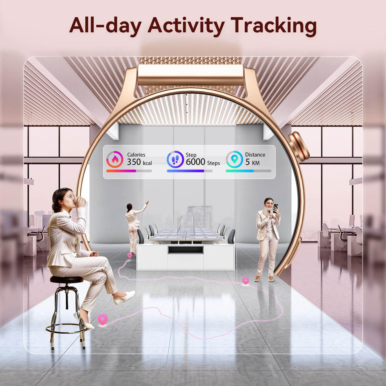 • Activity: 110+ sports modes, 3ATM waterproof. Tracks steps, routes, calories.