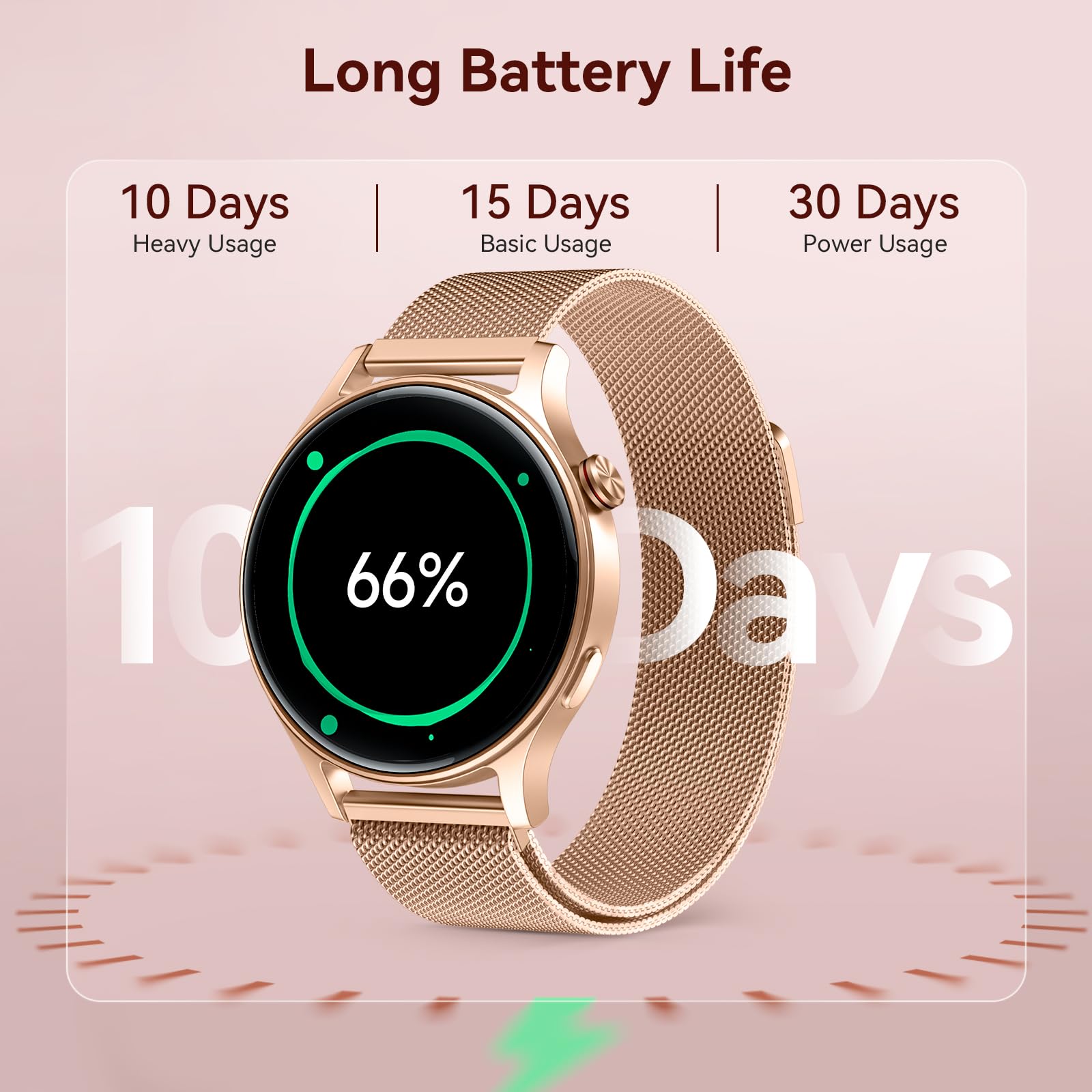 • Battery: Up to 10 days, 2-hour charge.