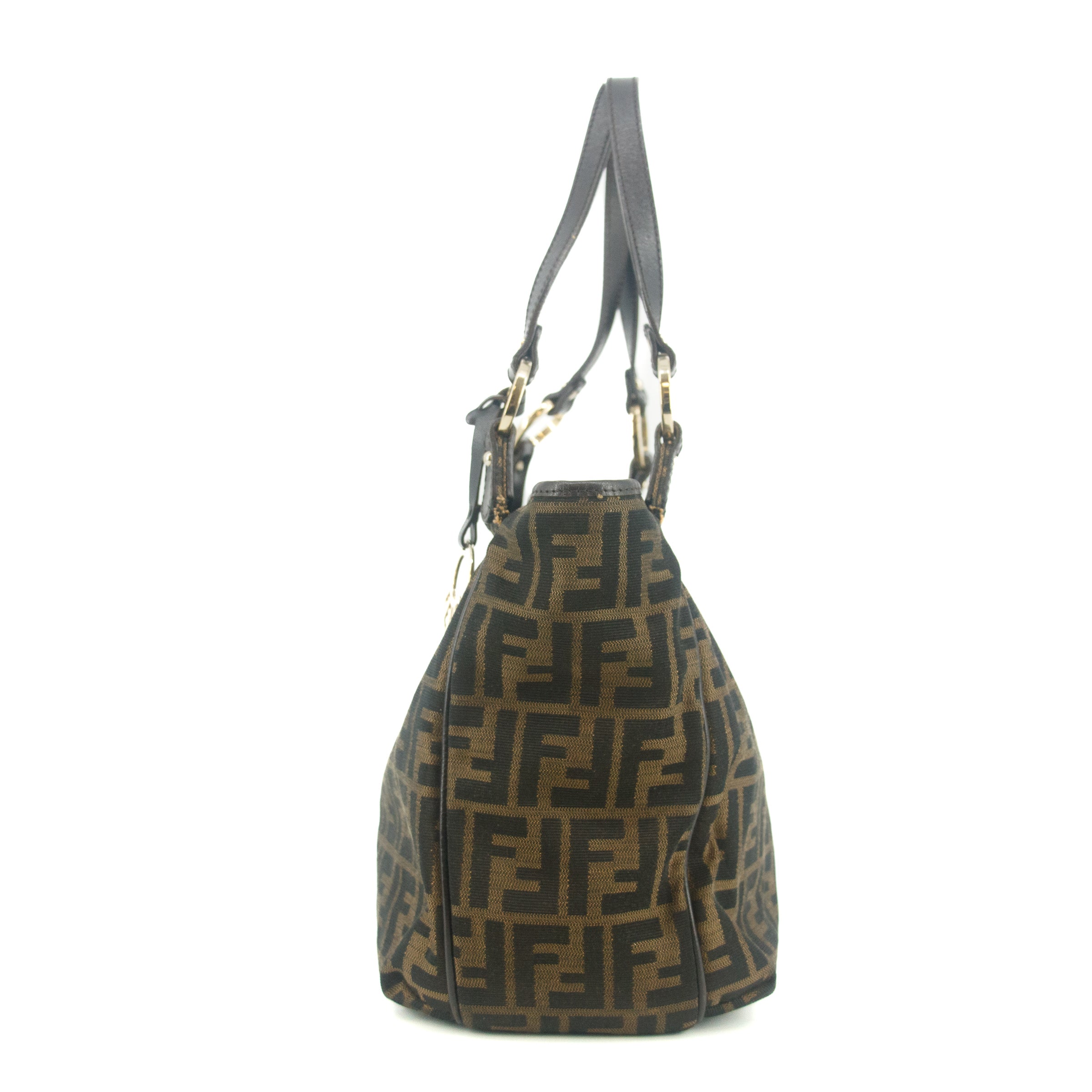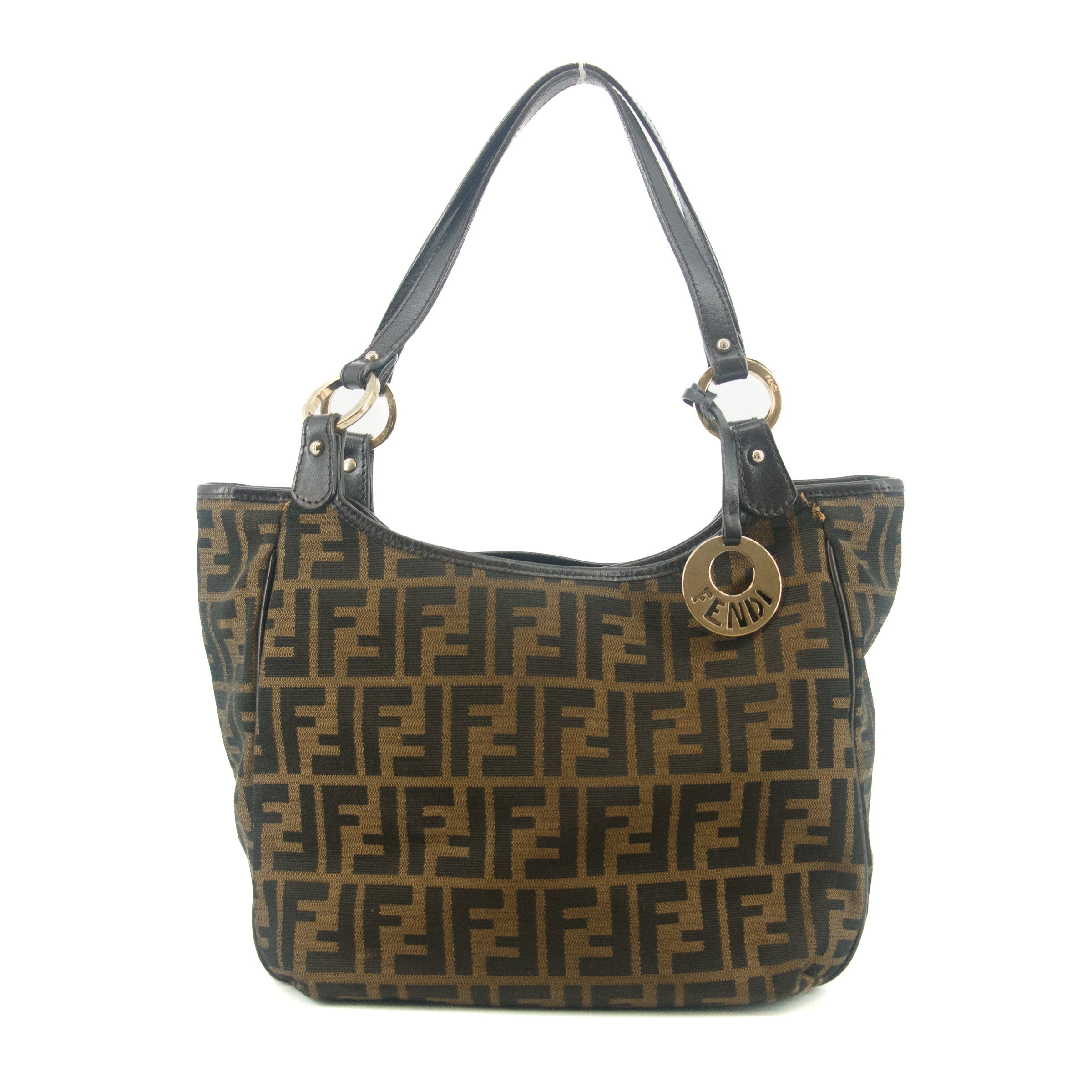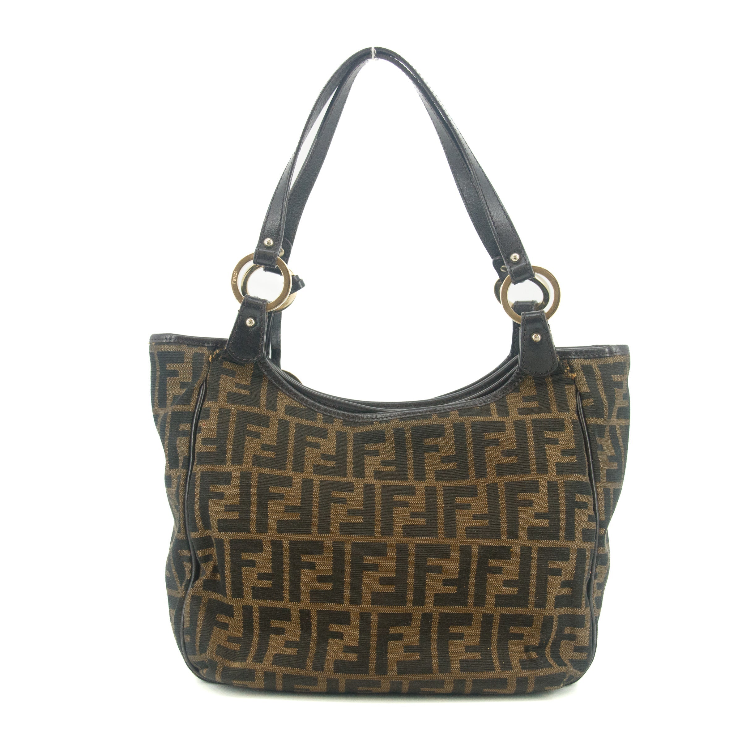 • Fendi Shoulder Bag Zucca Canvas Leather Khaki Brown -SKU #9210