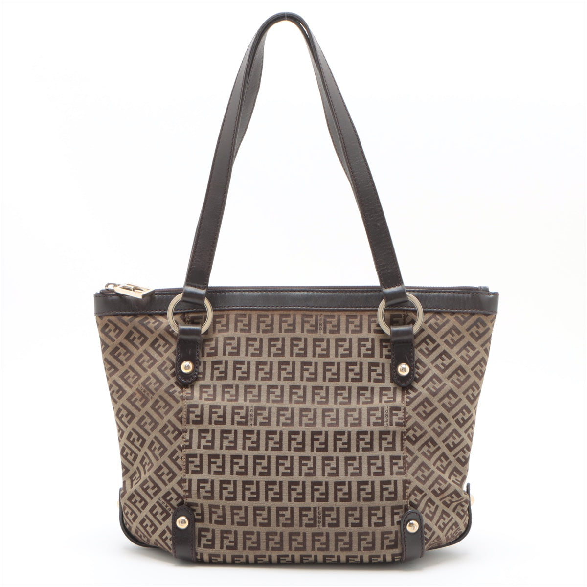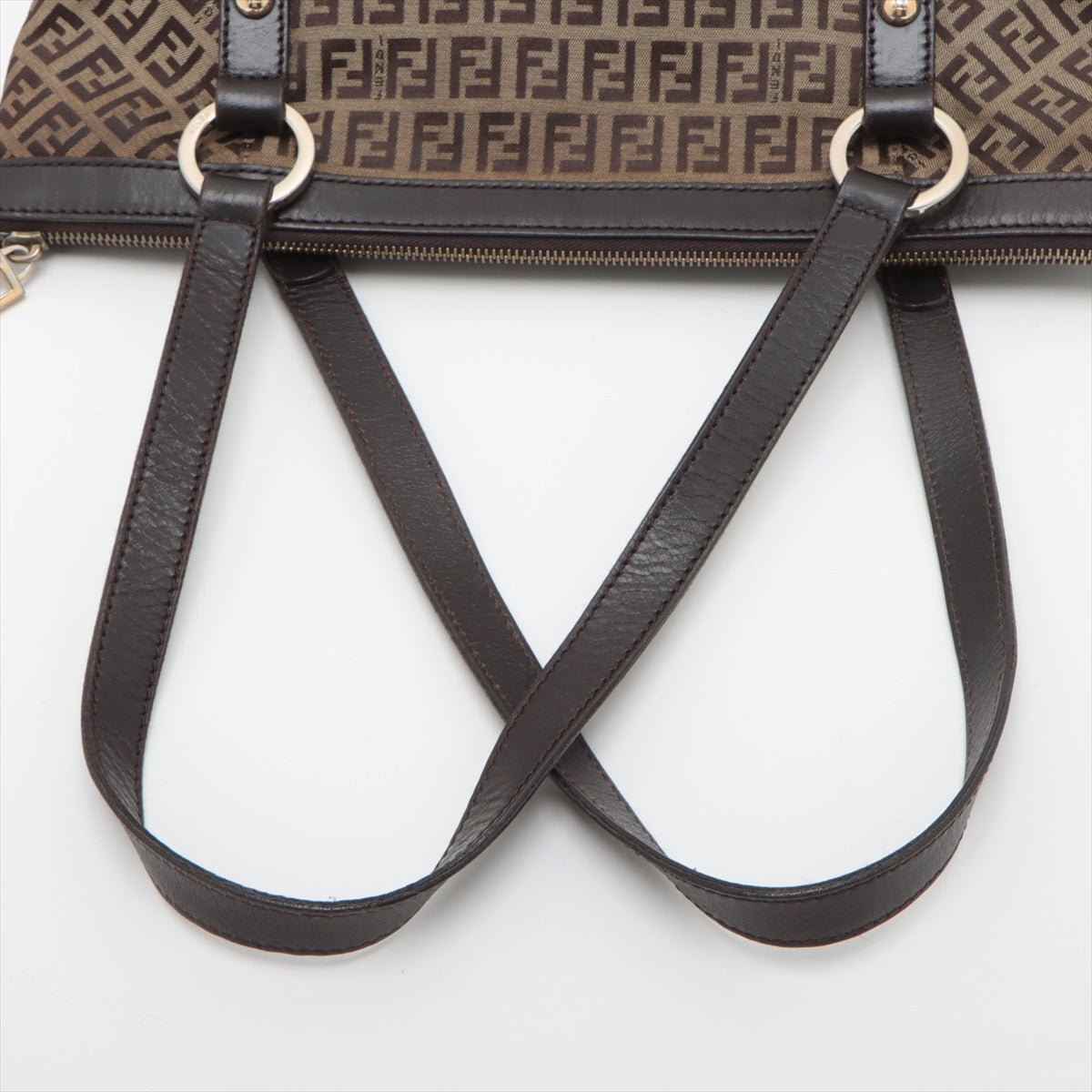 Fendi Zucchino Canvas & Leather Shoulder bag Brown 8BH196 #2328