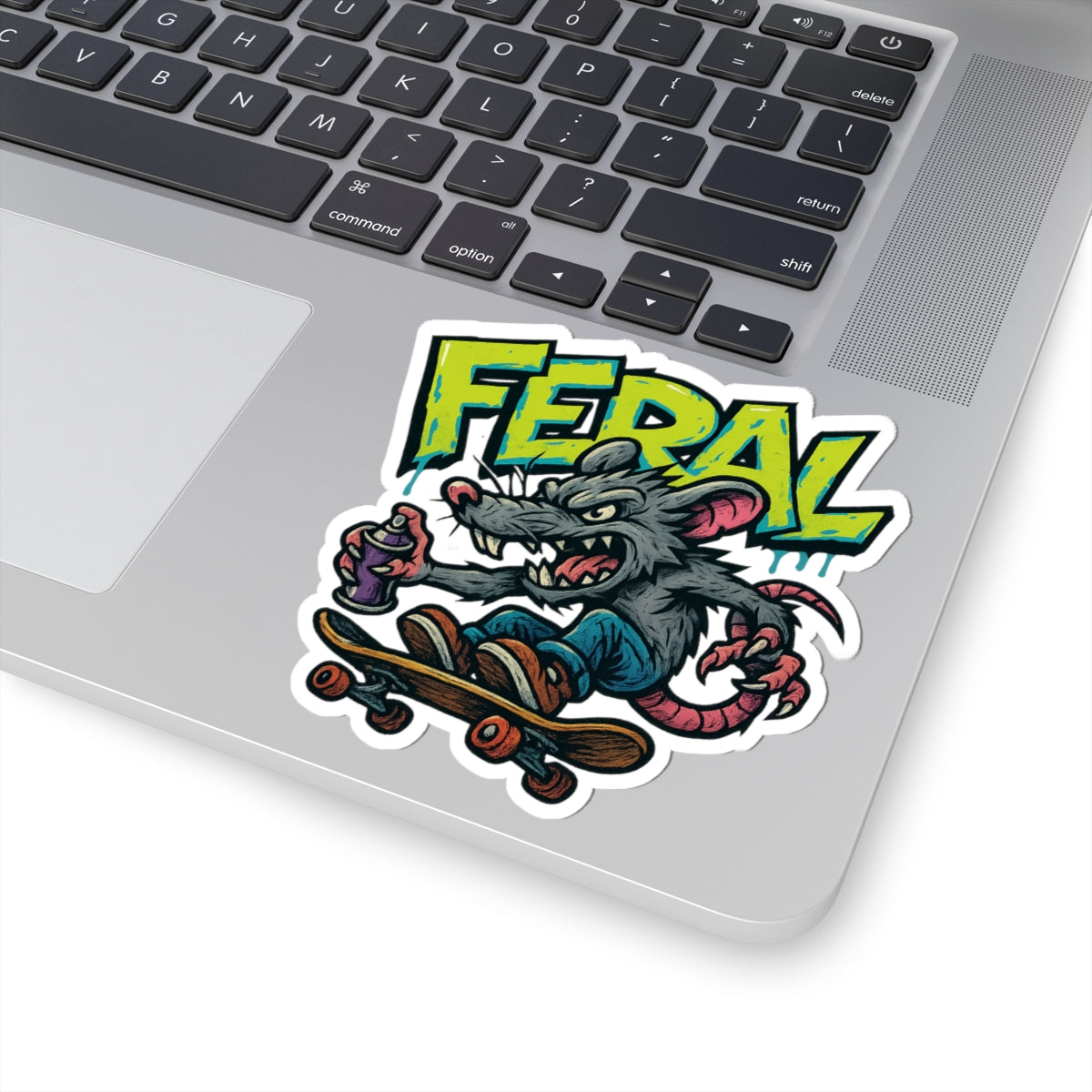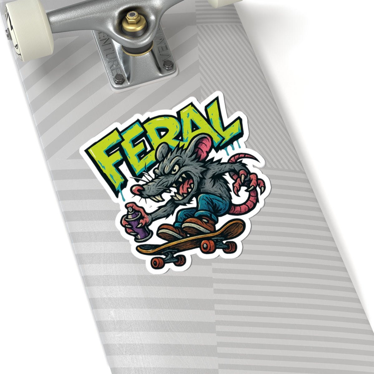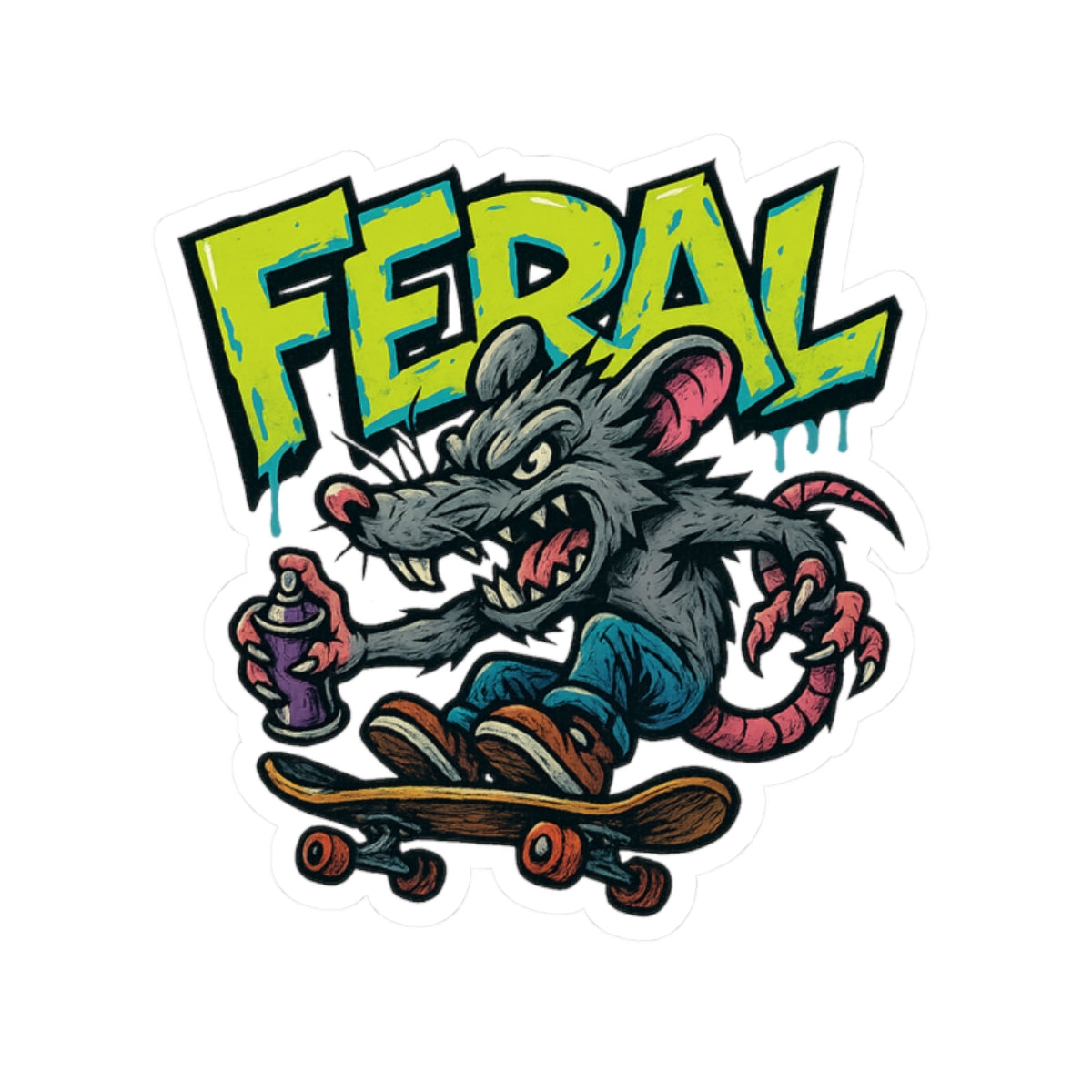 Feral Skate Rat Stickers | Cool Kiss-Cut Decals for Laptops, Water Bottles, Skateboards, Party Favors, Graffiti Lovers