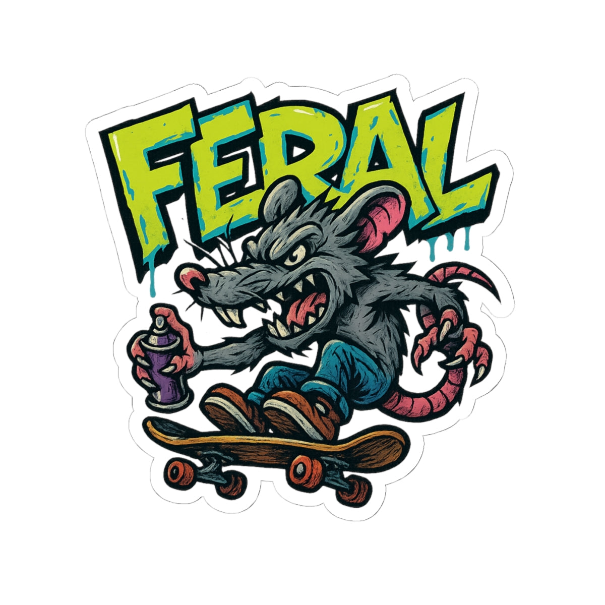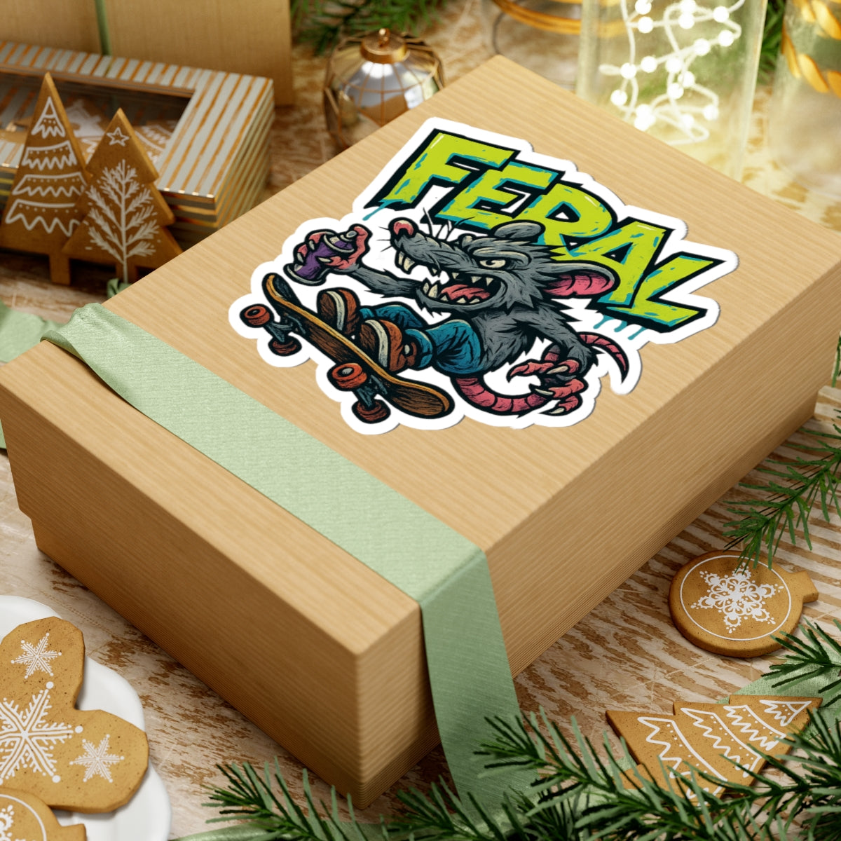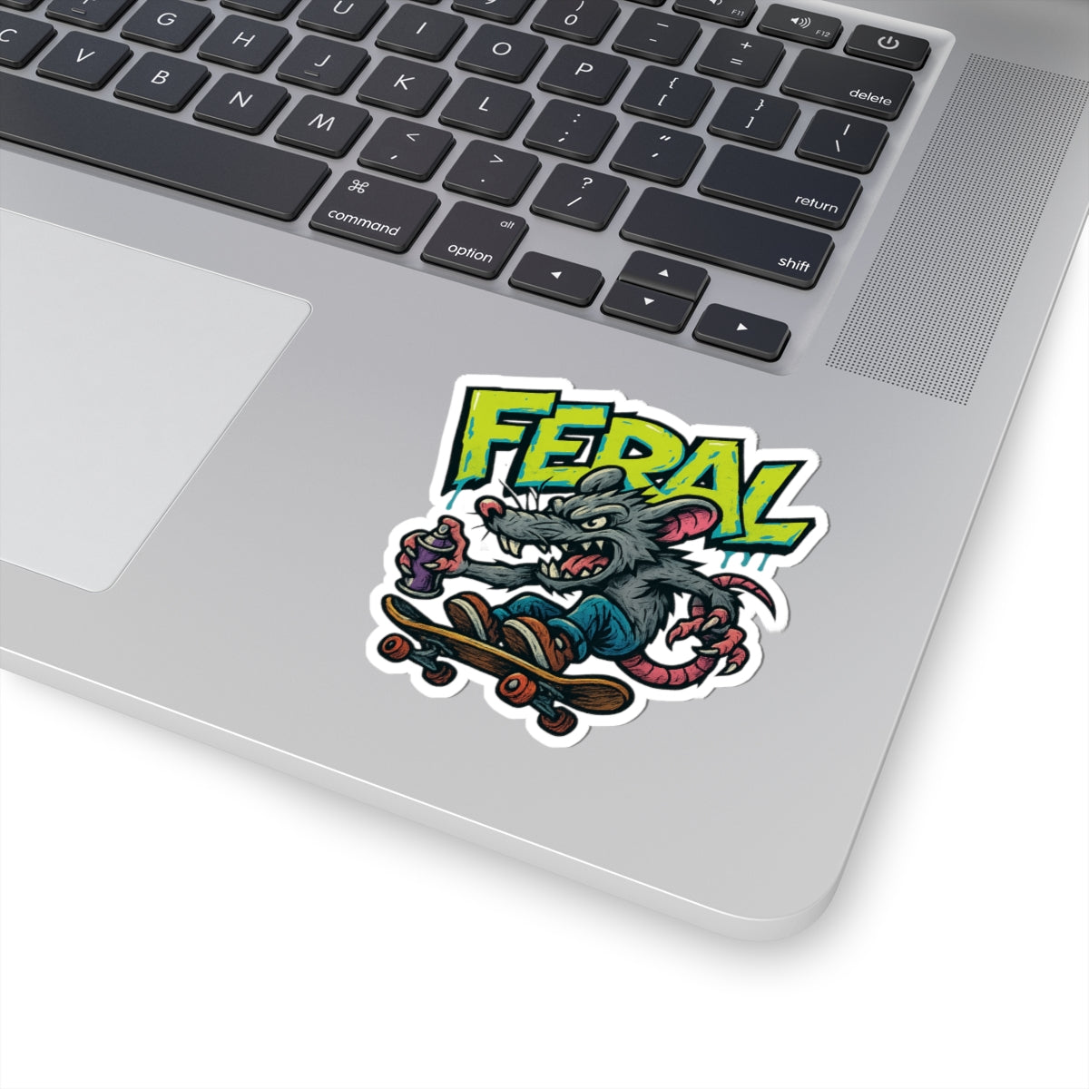 Feral Skate Rat Stickers | Cool Kiss-Cut Decals for Laptops, Water Bottles, Skateboards, Party Favors, Graffiti Lovers