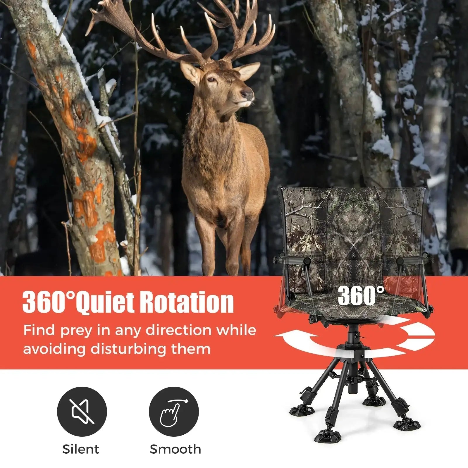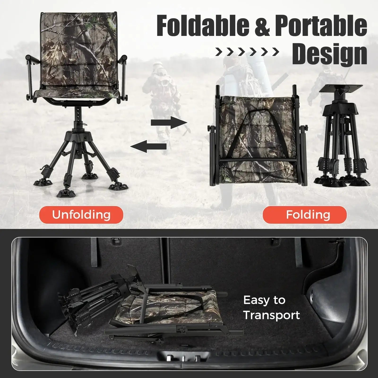 ● Noiseless 360 degree rotation base prevents disturbing animals● All-terrain swivel duck feet can better adapt to different grounds● Seat height is adjustable to better meet your different needs● Rustproof powder-coated steel frame ensures large load-bearing● Breathable mesh provide comfortable sitting experience● Ergonomic armrests and backrest offer great support to you● Built-in straps are easy to secure the folding seat tightly● Easy to be folded for effortlessly transport and storage