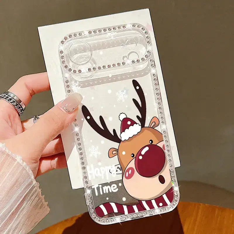 For iPhone 17 Pro Max Case Christmas Elk Santa Claus Diamond Cover For iPhone 13 14 15 12 11 16e 17 Air Funda iPhone 16 Pro Max