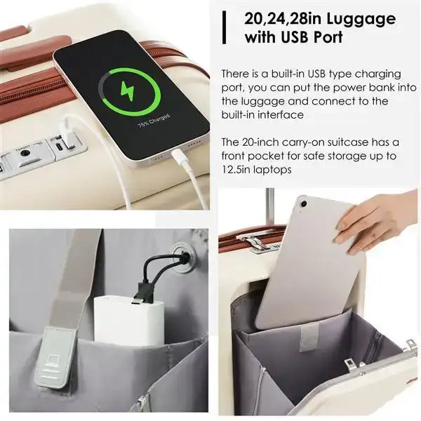 Smart Convenience Features: The 20-inch carry-on luggage is equipped with a USB interface, allowing you to charge your mobile devices anytime, anywhere. Additionally, the integrated hook and cup holder design make it more convenient to use while traveling.