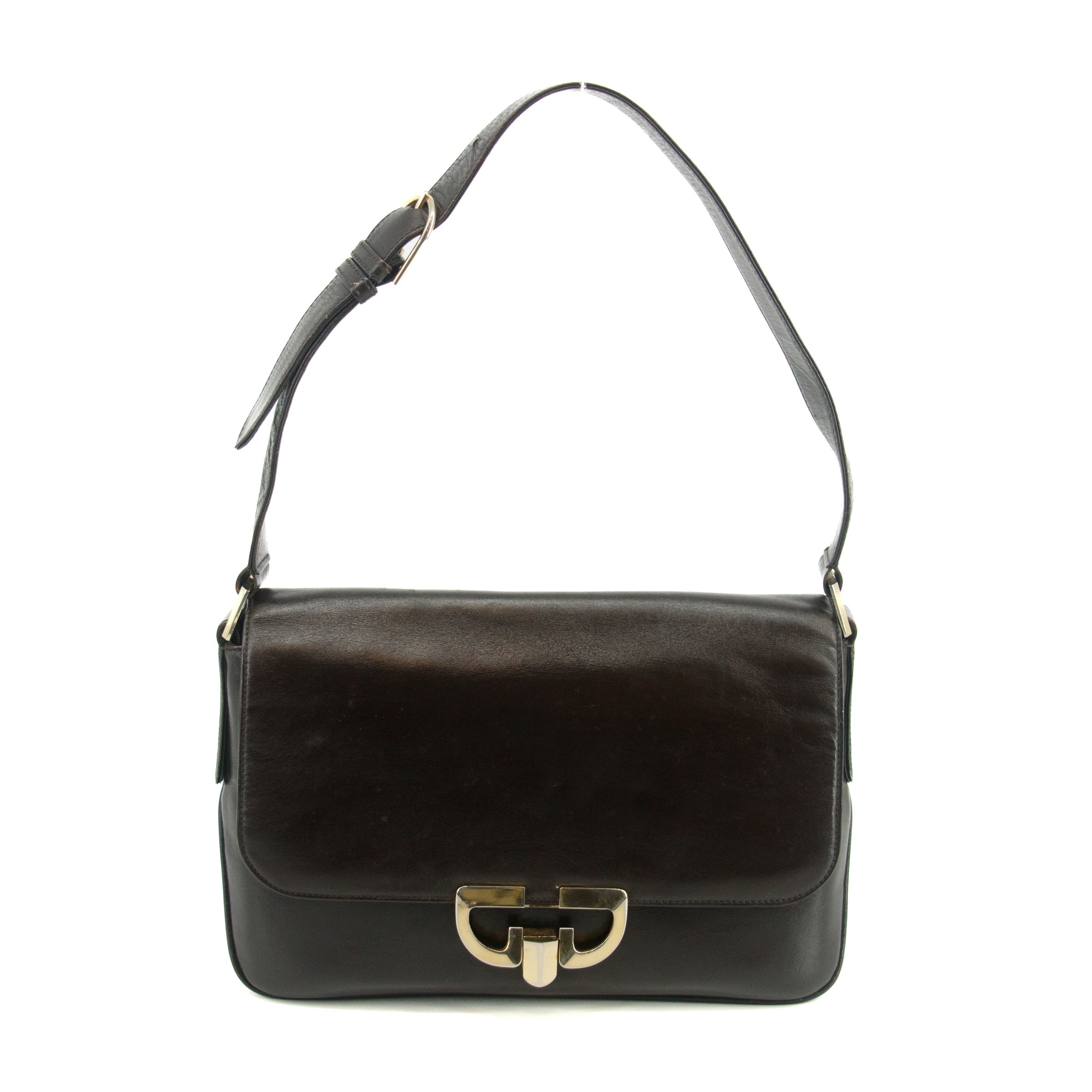 • Gucci Brown Leather Silver Hardware Vintage Shoulder Bag #3556