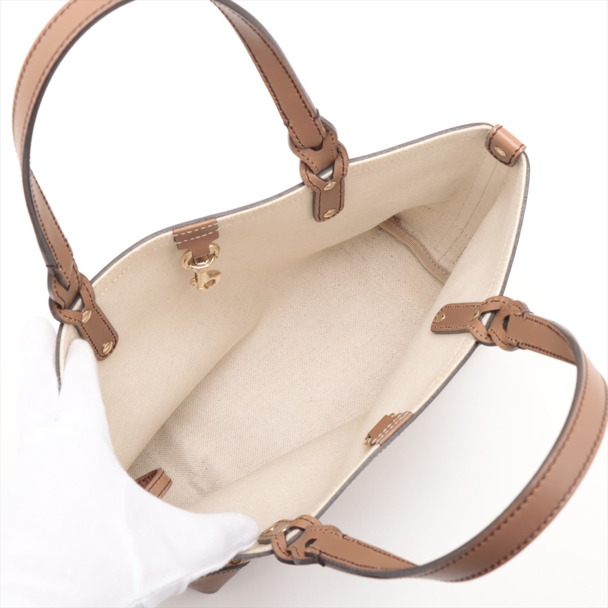 Gucci GG Canvas Canvas & Leather Hand bag Beige 269878 #2438