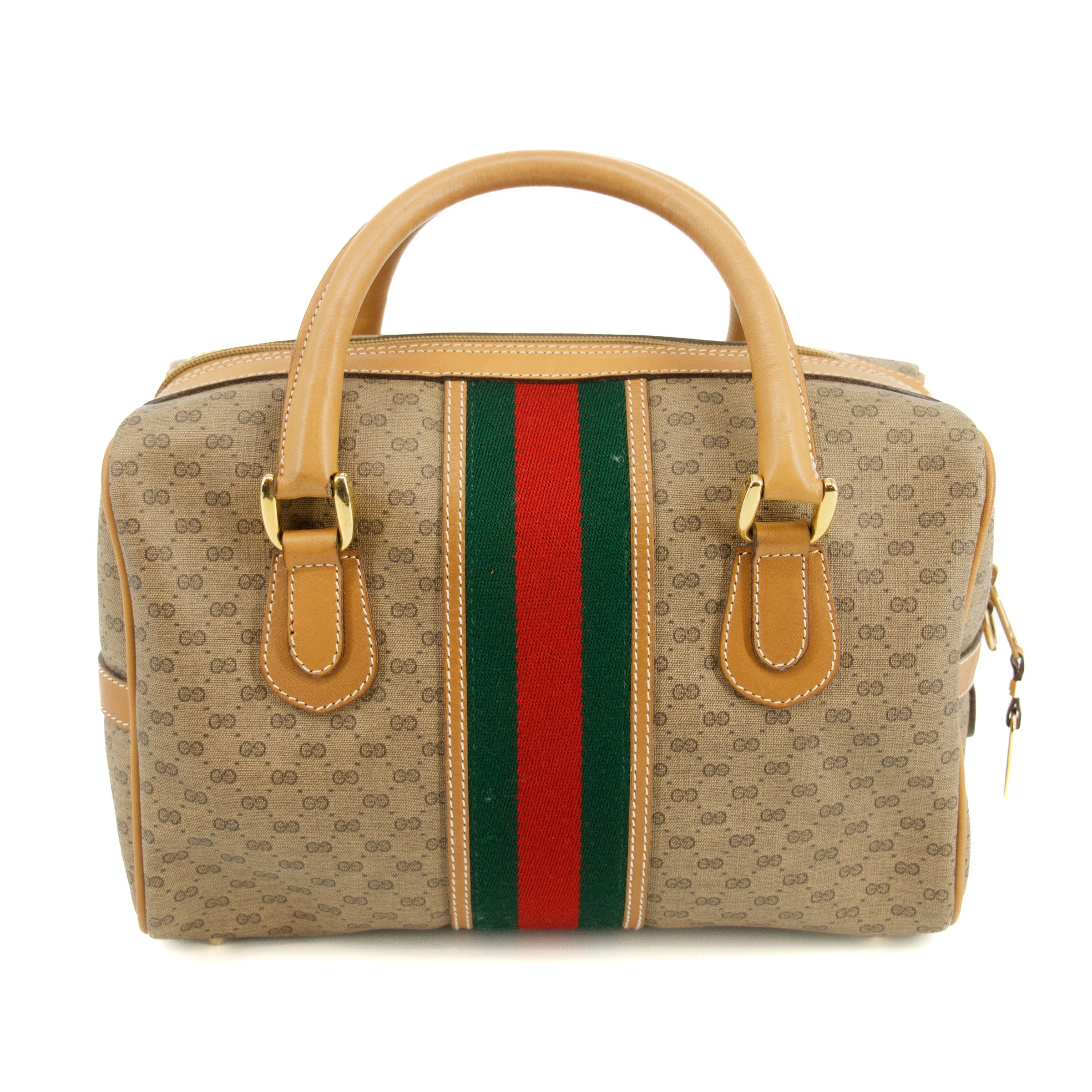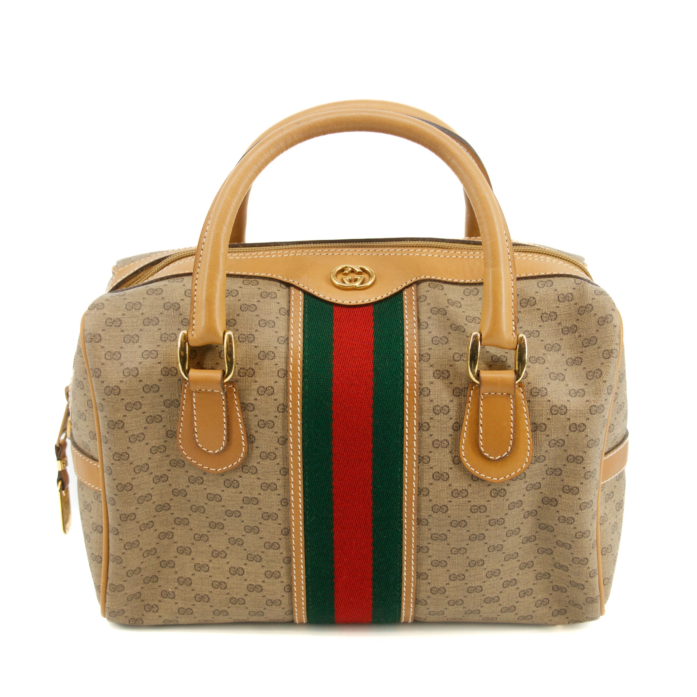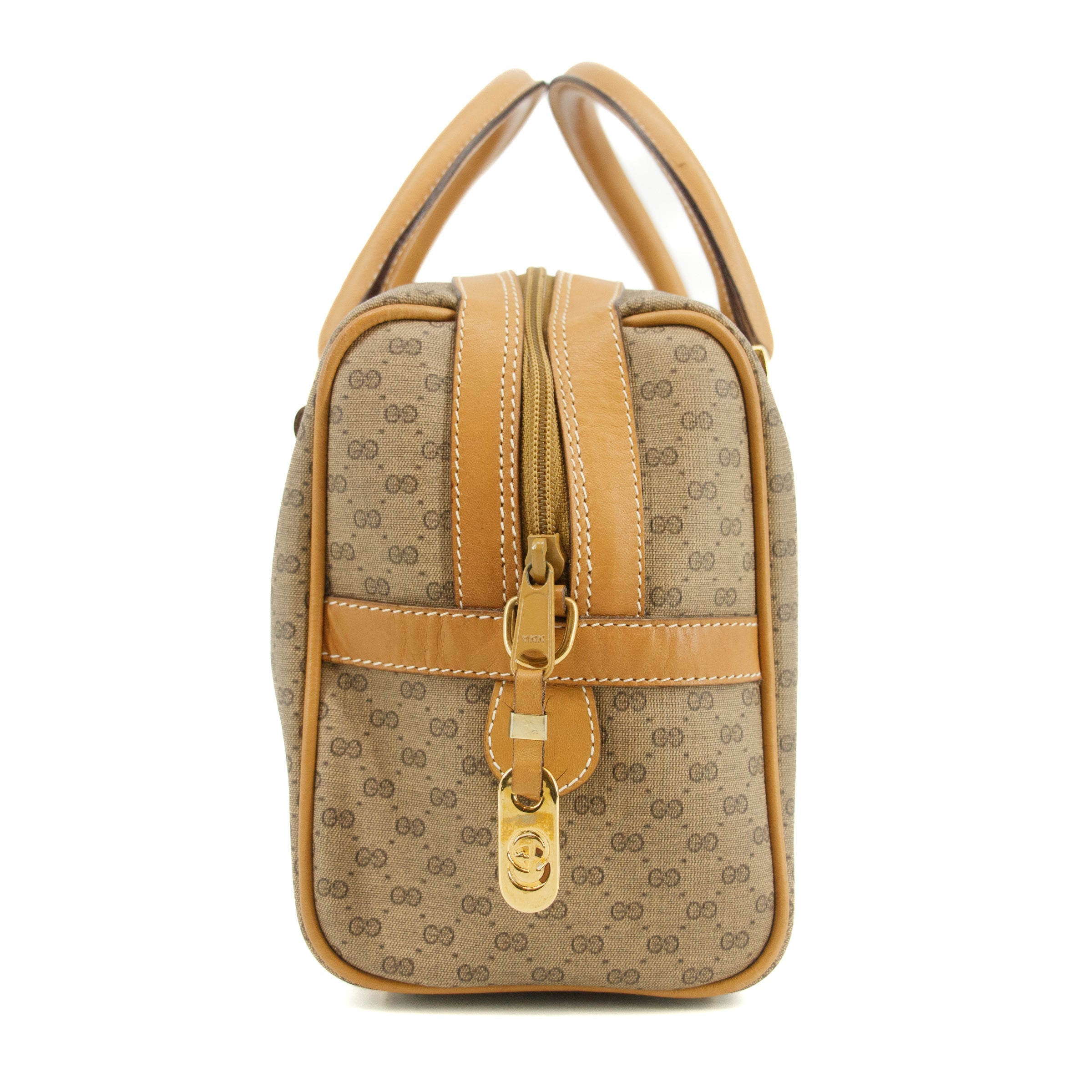 • Gucci GG Canvas Coated Sherry Line Mini Boston Bag Brown SKU-#3193
