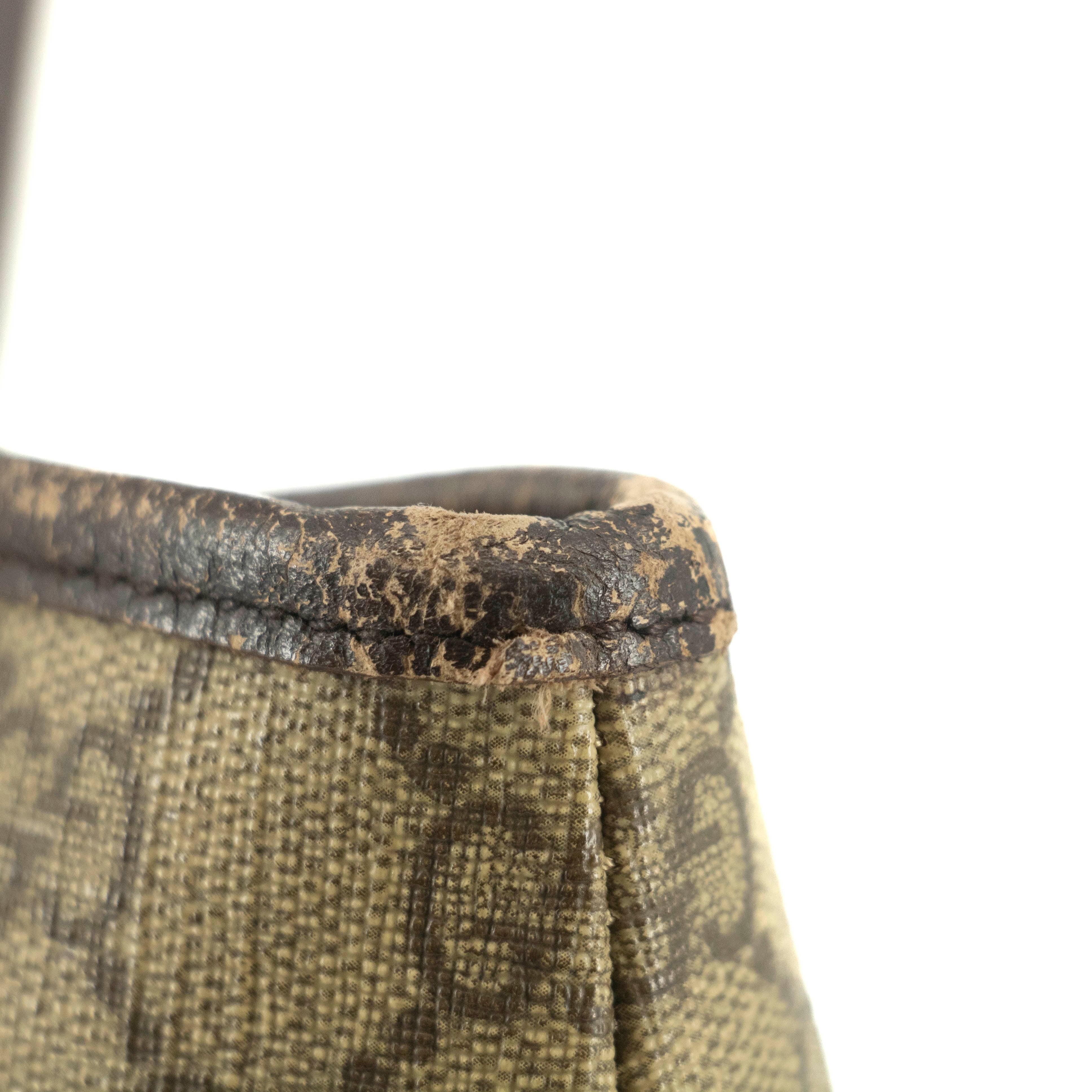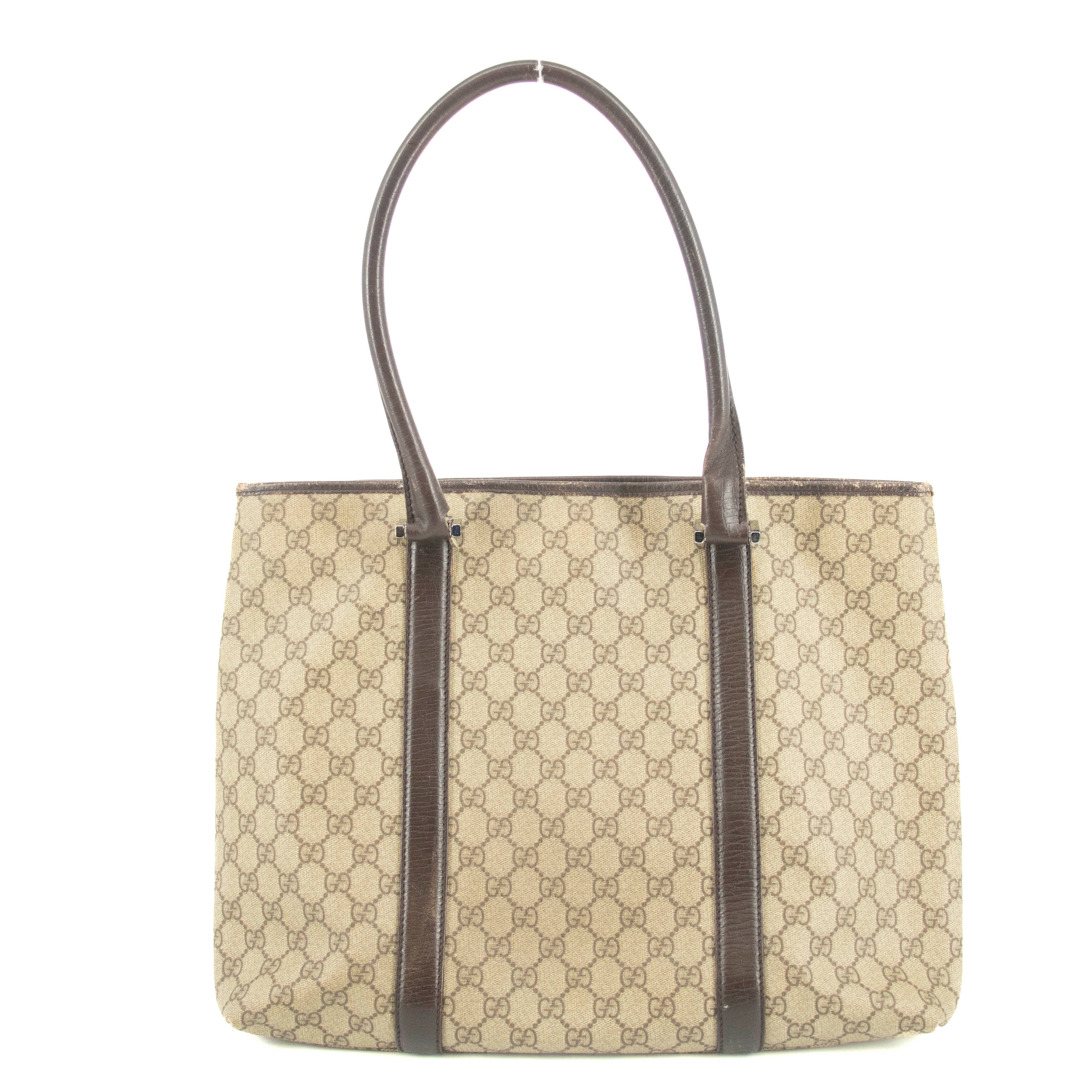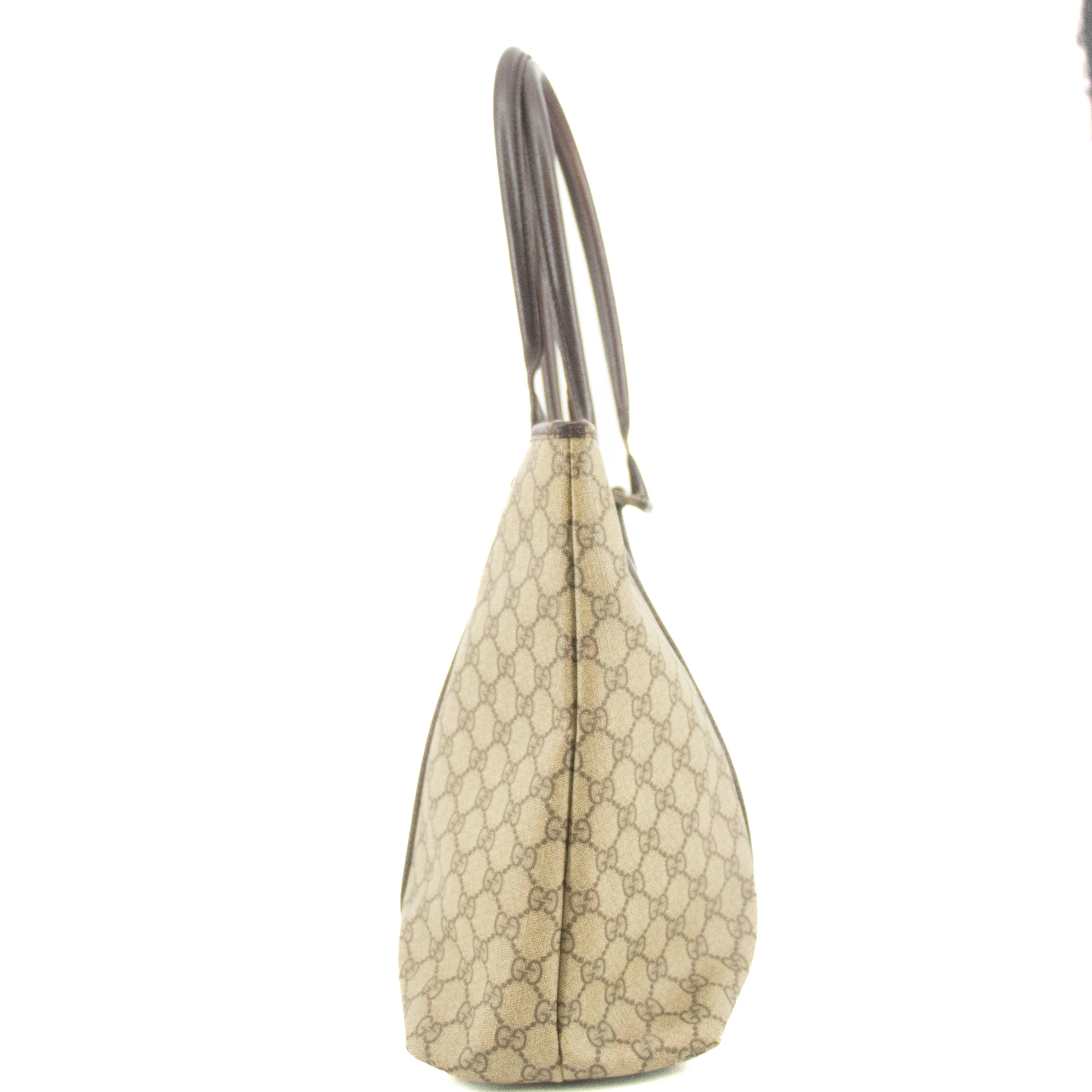 • Gucci GG Canvas Coated Supreme Beige x Brown Leather Shoulder Bag -SKU #4675