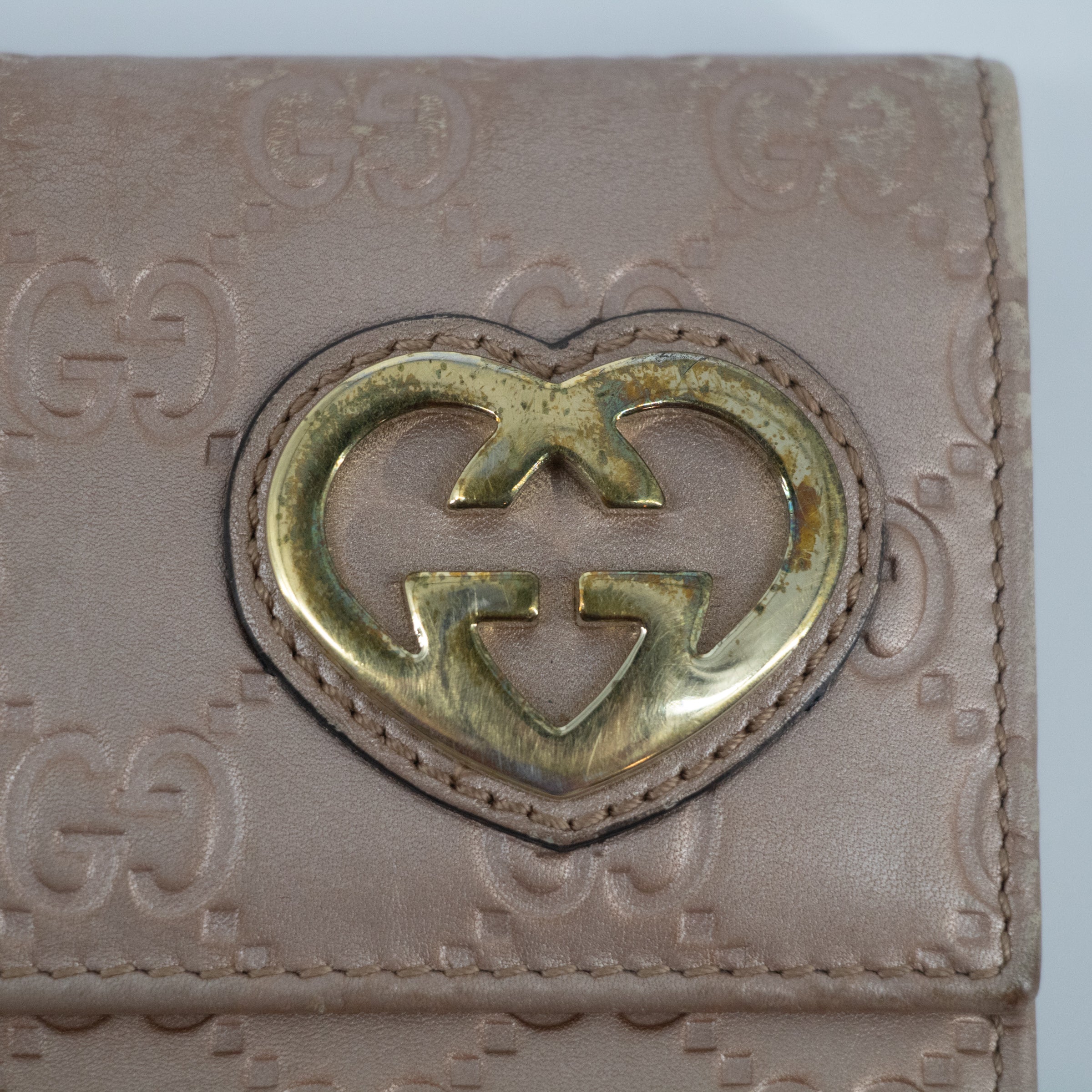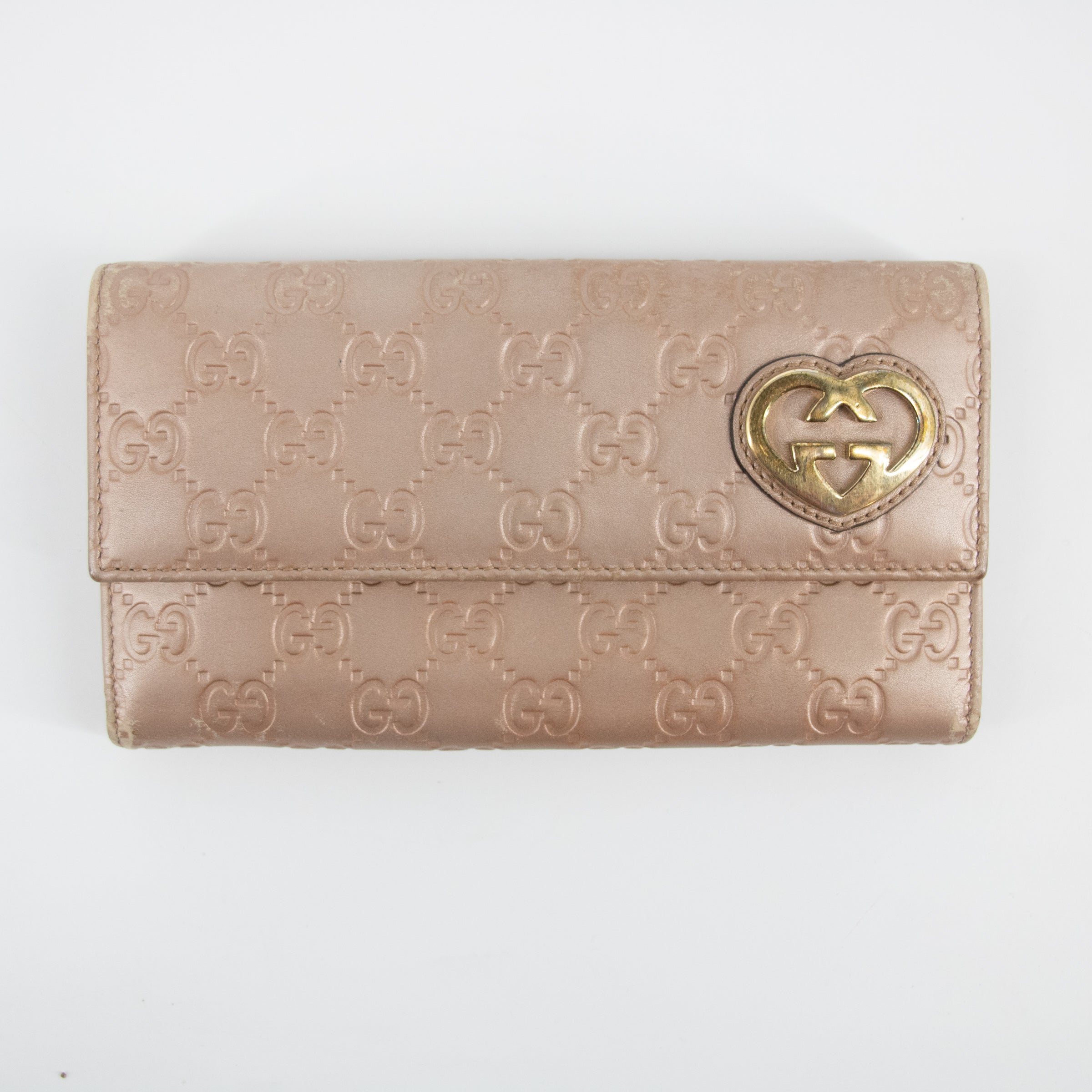 • Gucci Pink x Brown Guccisima Lovely Heart Leather Long Wallet-SKU #2286