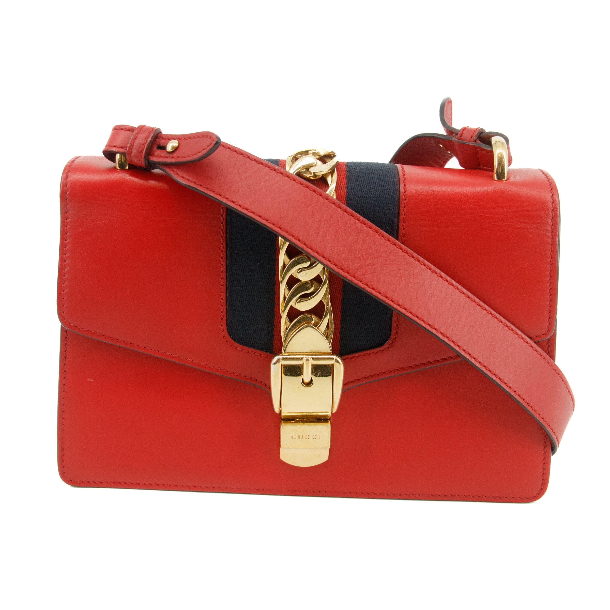 • Gucci Red Sylvie Sherry Line Leather Shoulder Bag -SKU #2943