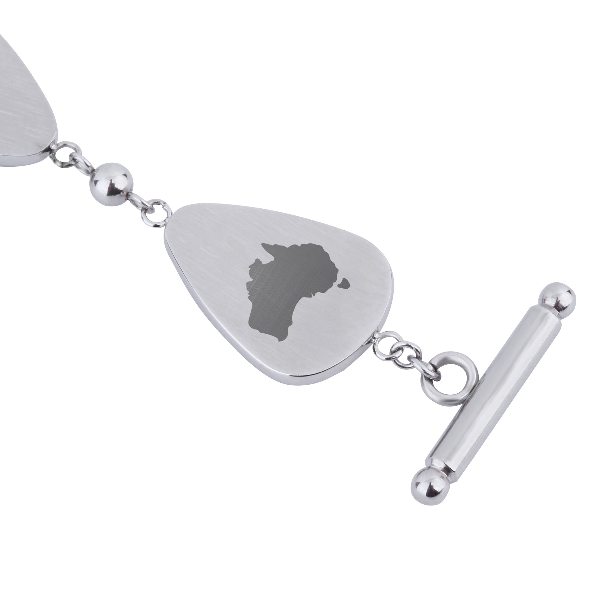 Stainless Steel water drop link bracelet with Gum Burl (Tasmanian Oak/Stringybark) timber inlays. Adjustable toggle and loop closure. Metal: Stainless Steel... Read more