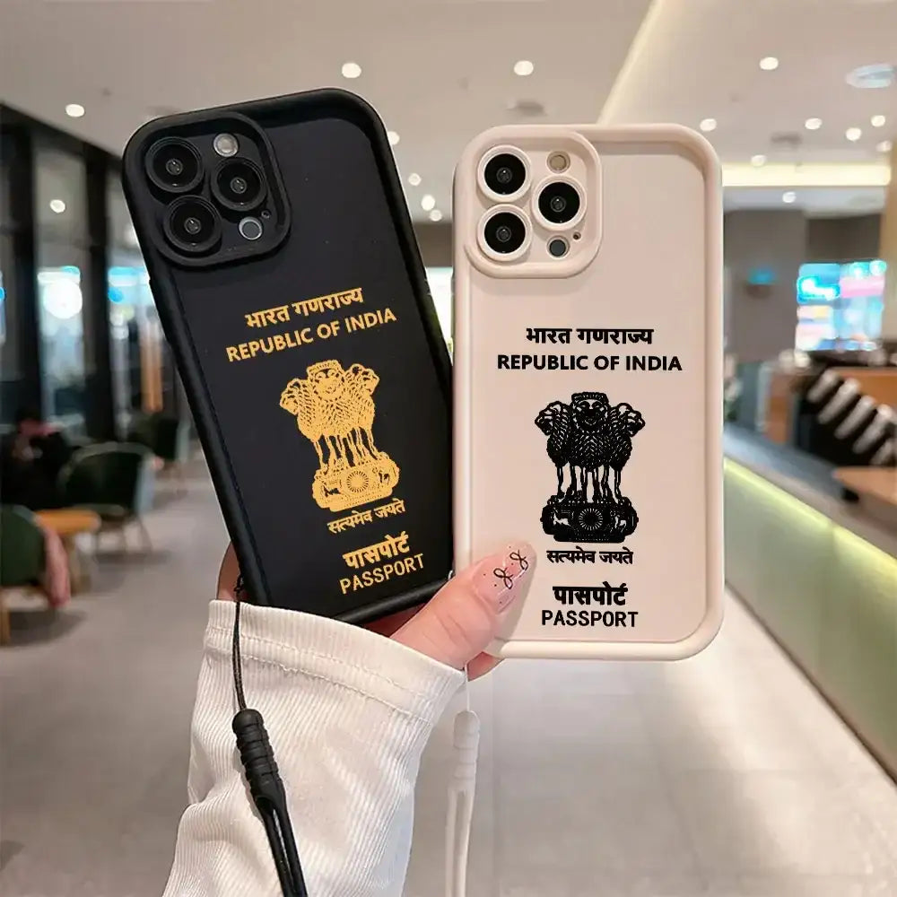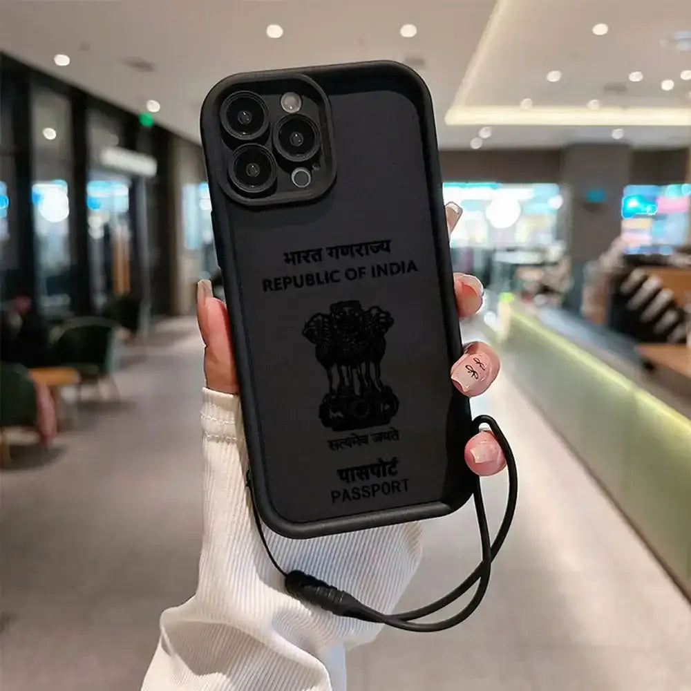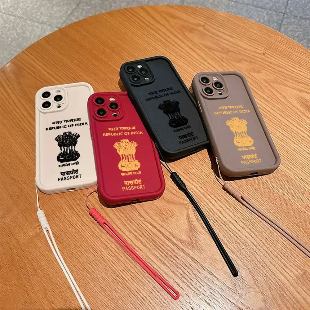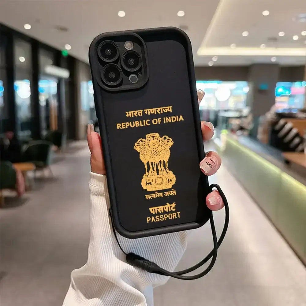 India Passport Phone Case for IPhone 16 15 14 13 12 11 Pro Max Mini XR XS X 7 8 Plus Soft TPU Back Cover With Hand Strap