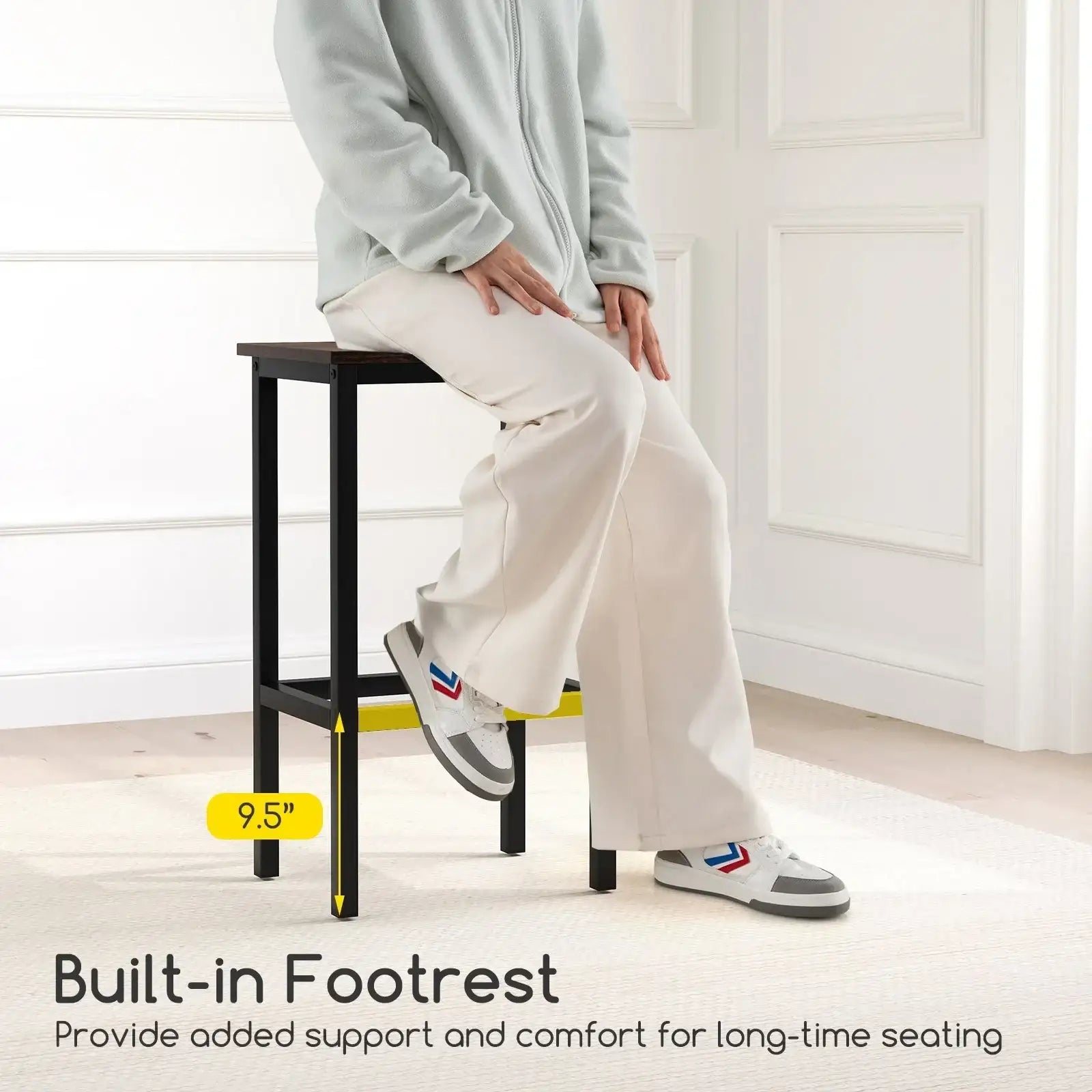 ● Comes with a table and 2 stools perfect for breakfast dining or drinking at home● The spacious tabletop provides a comfy area for meals drinks or game nights● Constructed from robust metal tubes withstand daily use and last for years to come● Adopts a H-shaped structure and reinforced triangular structures stable and safe● The table features adjustable footpads keep stable even on slightly uneven floors ● 2 stools conveniently slide under the table perfect for small places save floor space● Equipped with footrests for added comfort during dining or relaxation● The tabletop is crafted of premium engineered board waterproof easy to maintain● Versatile use