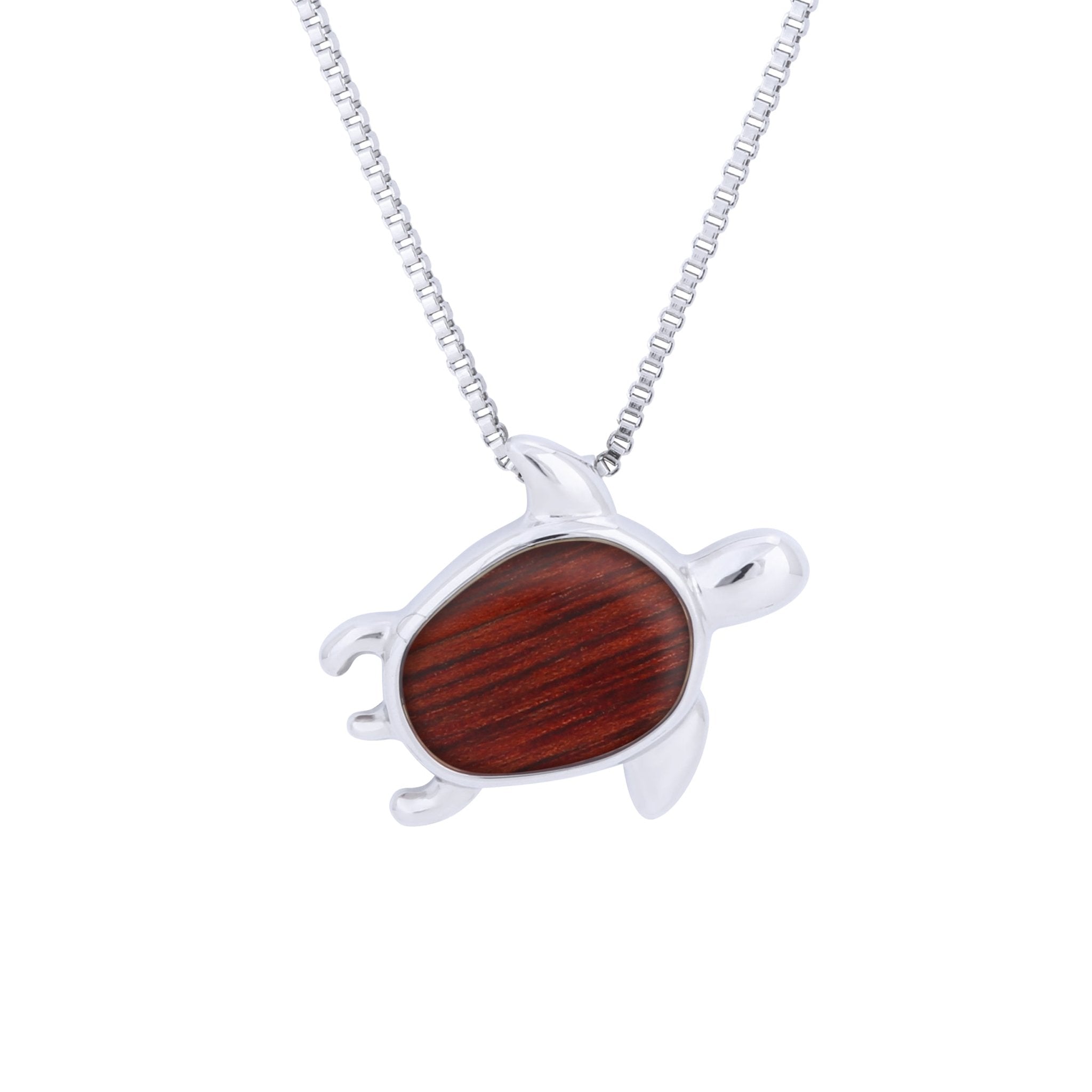 Stainless steel turtle pendant inlaid with Australian Jarrah wood.