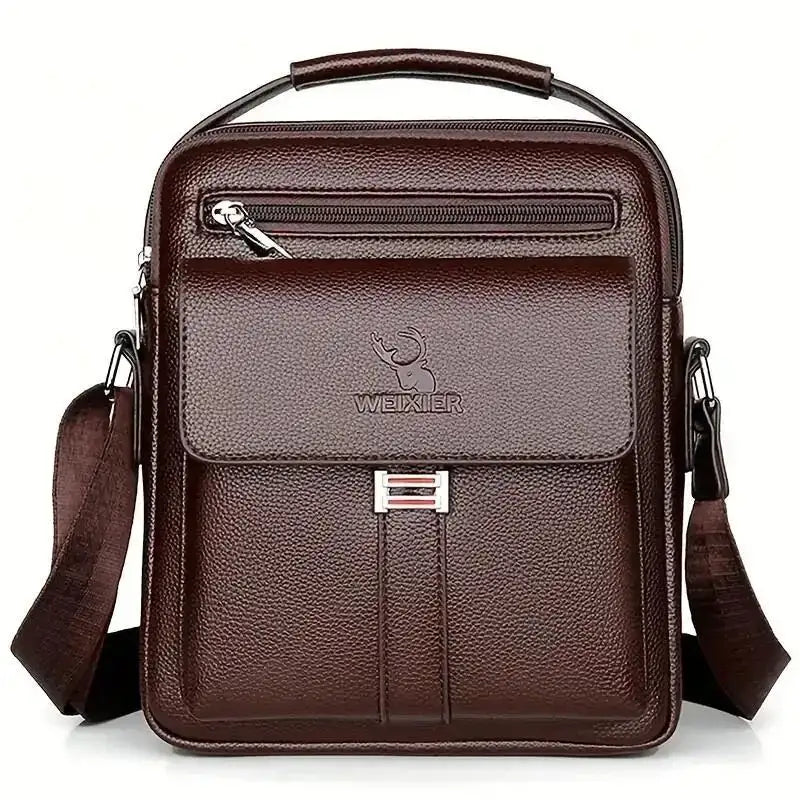 Leather Messenger Crossbody Shoulder Bag For Men Work Business Casual Adjustable Straps With Metal Zipper