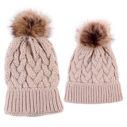 Luxury Modern Cute Kids Girls Hats Mother & Daughter Warm Knitted Hat And Caps Winter Newborn Baby Cap